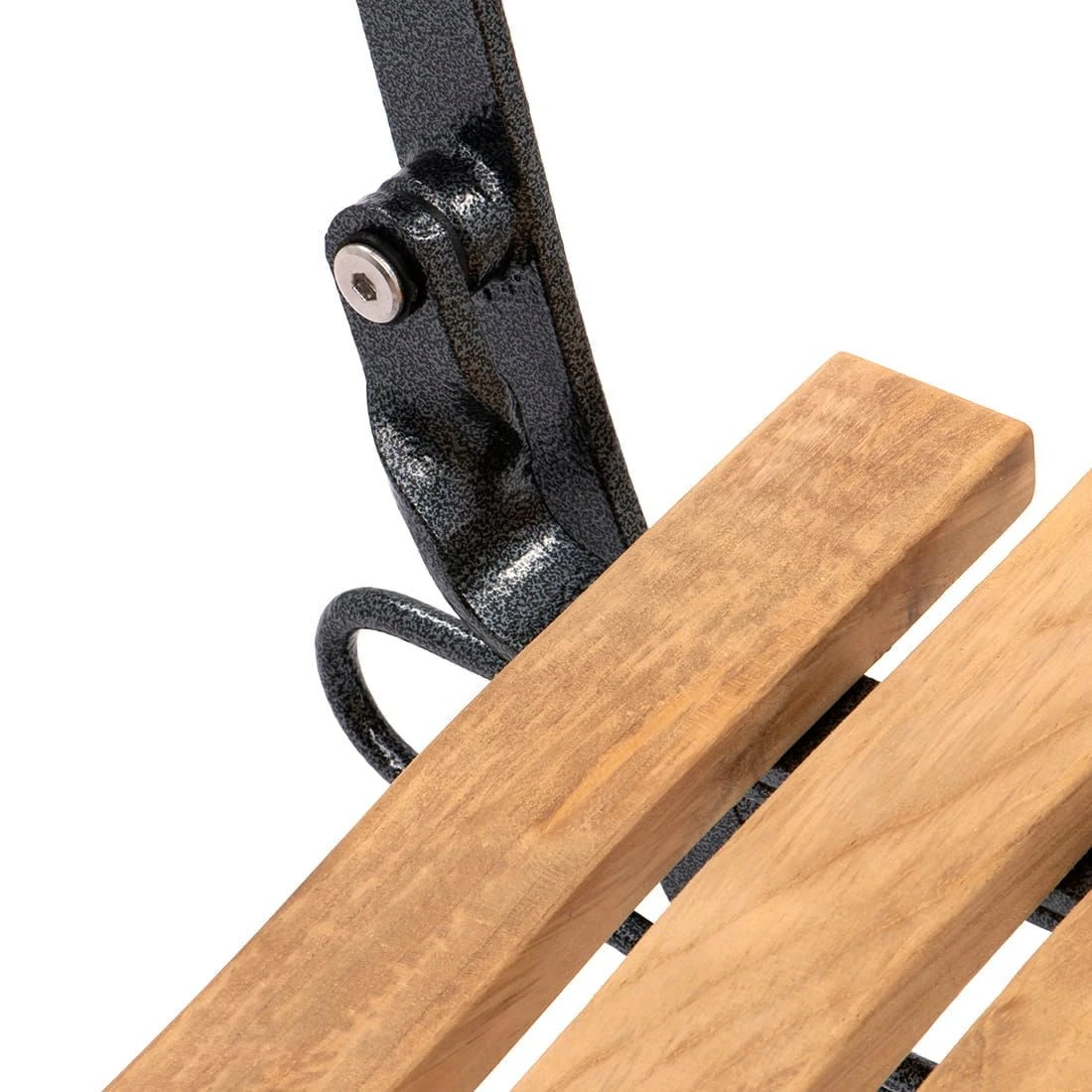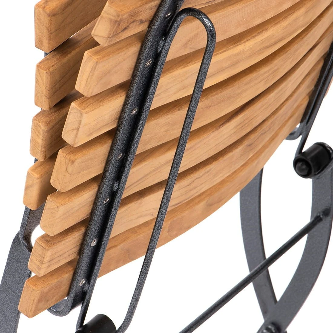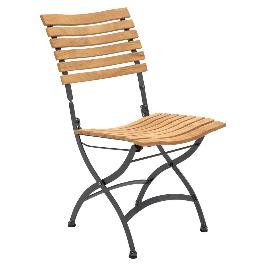 Das Gestell ist aus robustem Eisen in der Farbe Anthrazit gefertigt. Als Ergänzung zum Gestell wartet der Biergartenstuhl mit einer Sitzfläche aus Teakholz auf. So gelingt es, das Möbelstück mit einer guten Wetterfestigkeit besonders robust zu gestalten. Durch seine praktische Klappfunktion ist der Biergartenstuhl platzsparend zu verstauen.