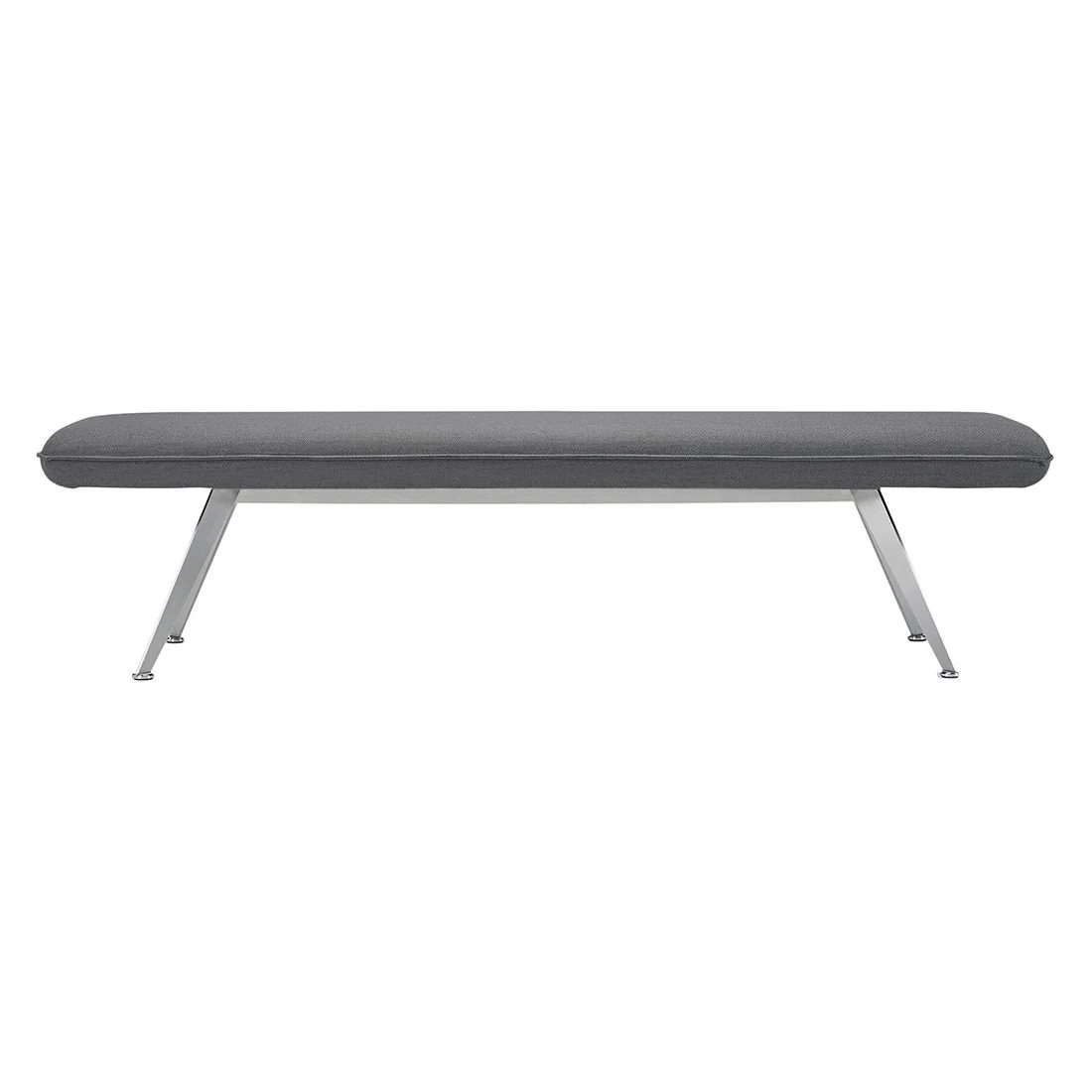 Das Gestell der Gartenbank besteht aus hochwertigem und rostfreiem Edelstahl. Neben seiner ansprechenden Optik bietet dieses Material auch eine hohe Stabilität. Für eine attraktive Optik ist das Gestell im Farbton Silber gehalten. Der feine Horizon-Bezug aus Acryl zeichnet sich durch eine wunderbare Obrflächenstruktur aus. Er ist zudem wasserabweisend, antibakteriell und schnelltrocknend, weshalb er sehr pflegeleicht ist und somit bestens für den Einsatz im Freien geeignet ist. Die Farbgestaltung der Sitzfläche in Marengo ist überaus ansprechend.