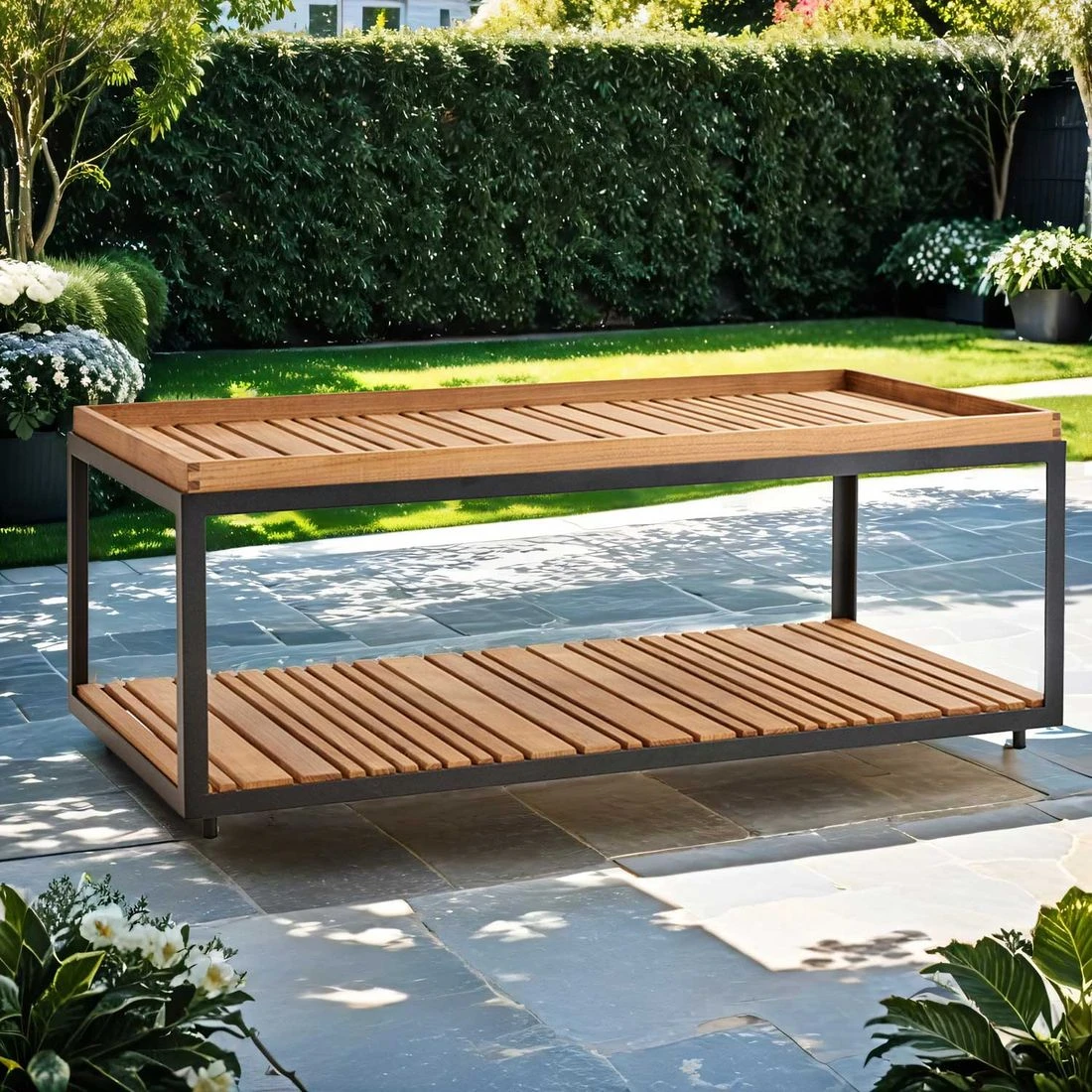 Als Material des Gestells hat der Hersteller qualitativ hochwertiges Aluminium gewählt. Als Material für die Tischplatte wird das wertvolle Hartholz Teak verwendet. Die Maserung dieses Holzes und der helle Farbton integrieren sich äußerst gut in jegliche Arten der Garten- und Balkongestaltung und verbreiten eine besonders natürliche Atmosphäre.