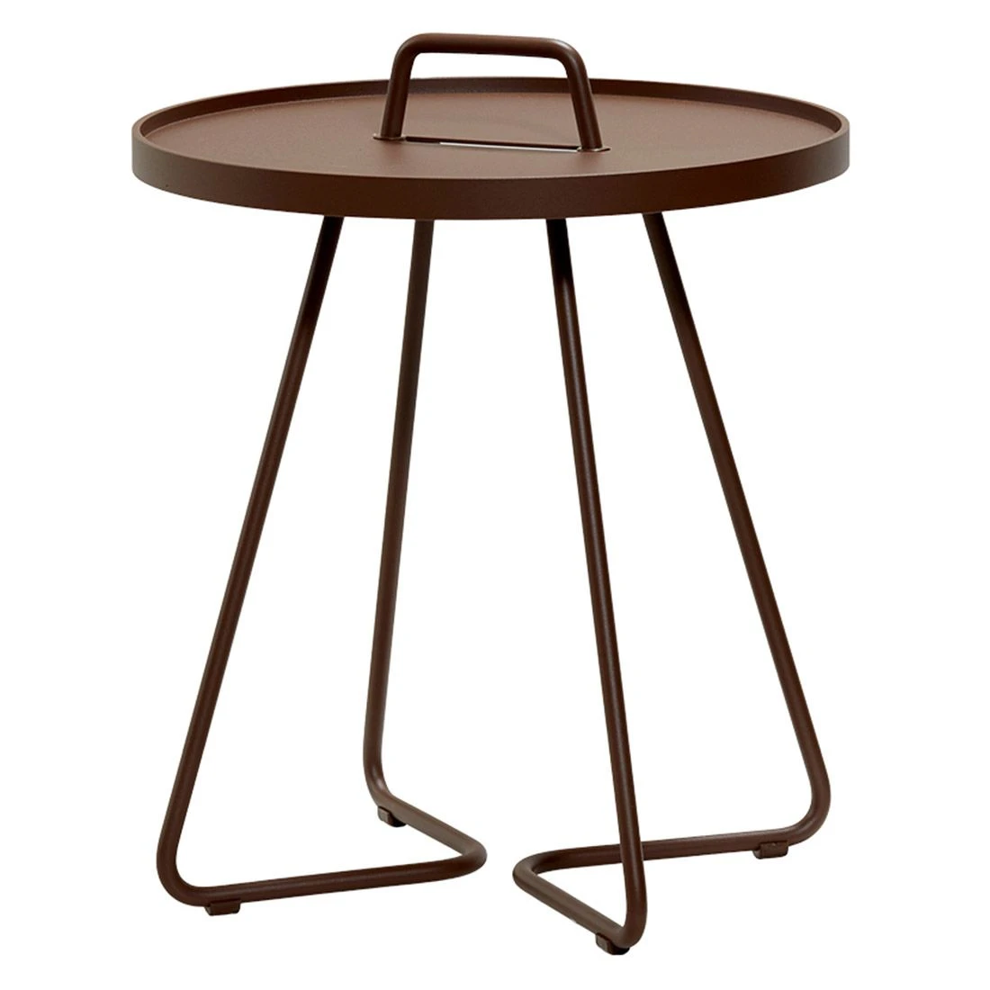 Der praktische Cane-Line Beistelltisch On-the-move ist vielseitig verwendbar und bietet Platz zum Abstellen von Gläsern oder anderen Gegenständen im Garten.