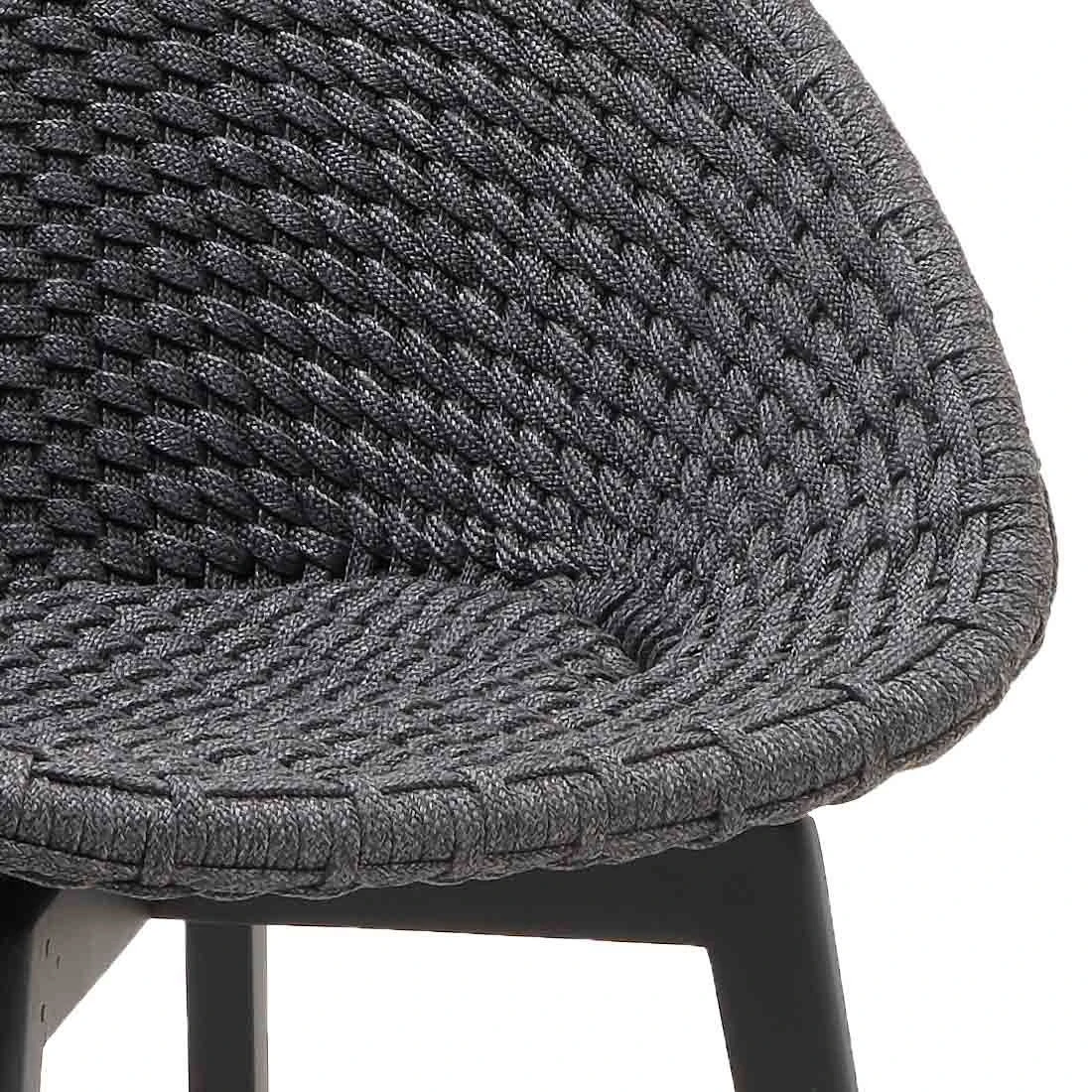 Das Gestell wird aus Aluminium in der Farbe Black gefertigt. Das geringe Eigengewicht des Materials macht den Gartensessel zu einem robusten, aber dennoch leicht zu transportierenden Sitzmöbel auf Ihrer Terrasse. Das Gestell ist mit Rope umflochten und bringt somit modernen Flair auf Ihre Terrasse.