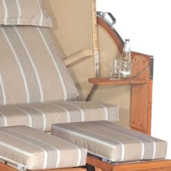 Enthalten ist ein spezielles Holzöl, das das Hartholz Ihres Strandkorbes reinigt. Zudem schützt das Öl vor Witterungseinflüssen und verleiht ihm einen dezenten Glanz.