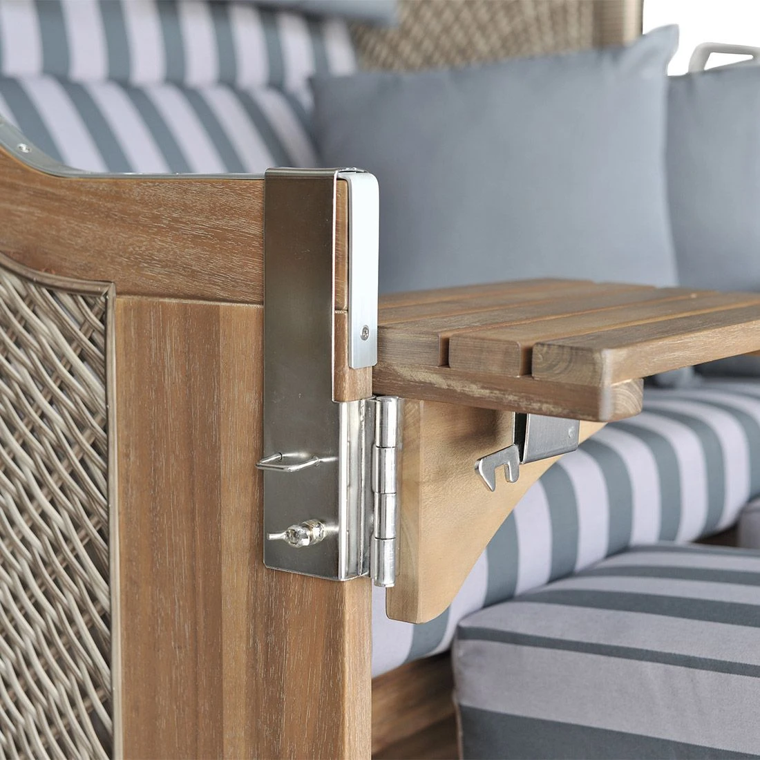Erleben Sie mit dem bequemen deVries Strandkorb Entspannung wie im Urlaub direkt in Ihrem Zuhause. Durch die Kombination von modernem Geflecht und hochwertigem Massivholz ist dieser Strandkorb nicht nur äußerst gemütlich, sondern zudem sehr stabil und robust. Die Verbindung der unterschiedlichen Materialien macht dieses Möbel besonders wertig, wodurch es sich auf jeder Terrasse und in jedem Garten sehen lassen kann. Dank der weiteren Funktionalitäten können Sie diesen Strandkorb genau auf Ihre Bedürfnisse abstimmen. Um das Urlaubsfeeling passend abzurunden, bringt der Strandkorb noch reichlich Extras mit, damit sich Ihr Zuhause in eine echte Wohlfühloase verwandelt.
