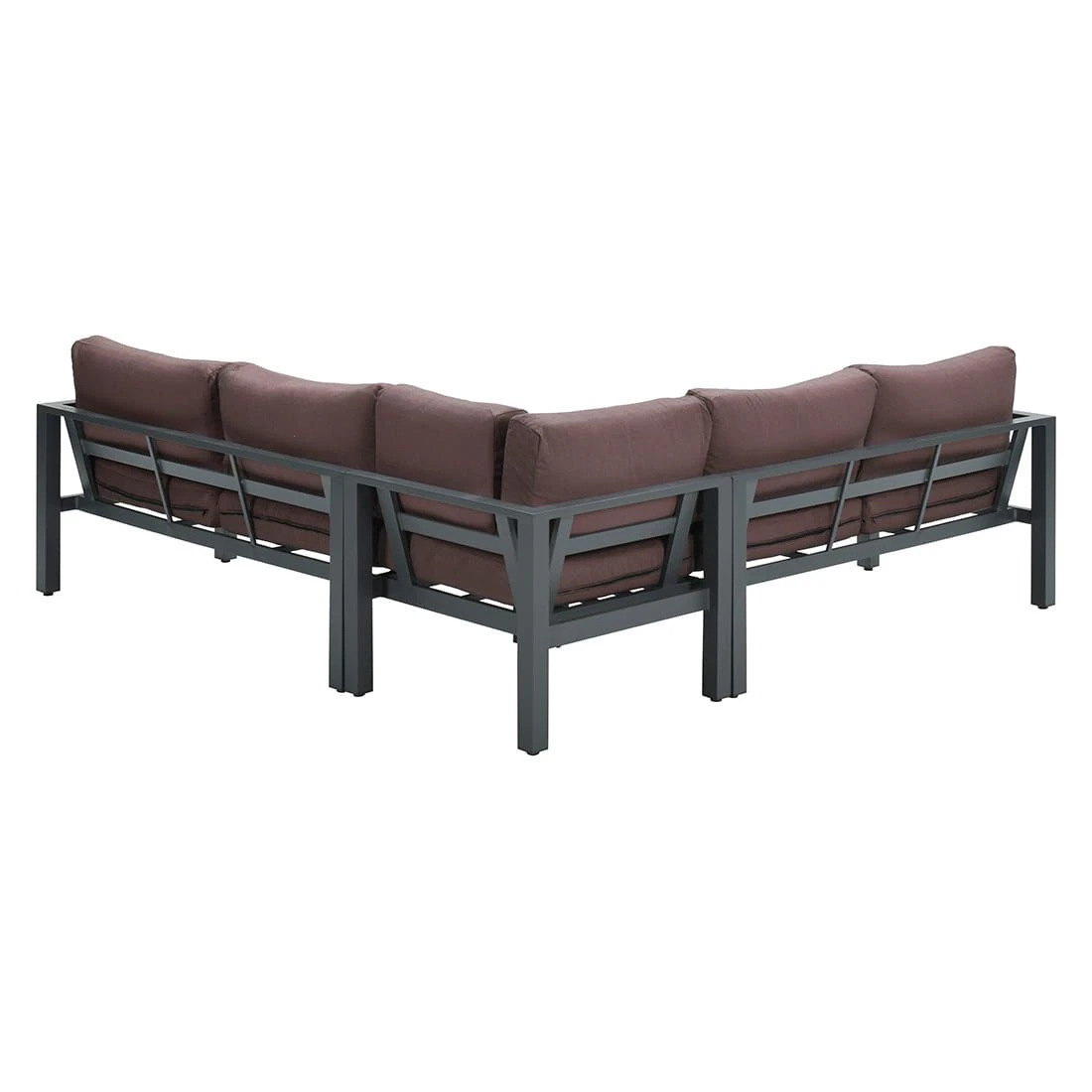 Für das Gestell und die Tischplatte kommt Aluminium zum Einsatz. Damit die Ecklounge optisch ansprechend ist, sind das Gestell und die Tischplatte im Farbton Carbon Black gehalten. Der Bezug der Ecklounge ist aus Polyester gefertigt. Für eine längere Haltbarkeit empfehlen wir bei stärkerem oder lang anhaltendem Regen, die abnehmbaren Kissen im Innenraum zu lagern. Die Farbe des Bezugs ist Copper.