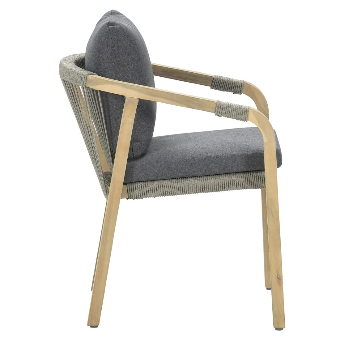 Das Gestell wird aus Akazienholz gefertigt und bringt ein natürliches Flair auf Ihre Terrasse. Für eine attraktive Optik ist das Gestell im Farbton Akazie White Wash gehalten. Hochwertiges Rope umgibt das robuste Gestell und verleiht dem Gartensessel damit einen ganz besonderen Look. Als hochwertiges Material für den Bezug kommt ein Polyester-Stoff zum Einsatz. Er ist sehr strapazierfähig und bietet somit die idealen Voraussetzungen für den Einsatz im Freien. Farblich begeistert der Bezug in elegantem Anthrazit.