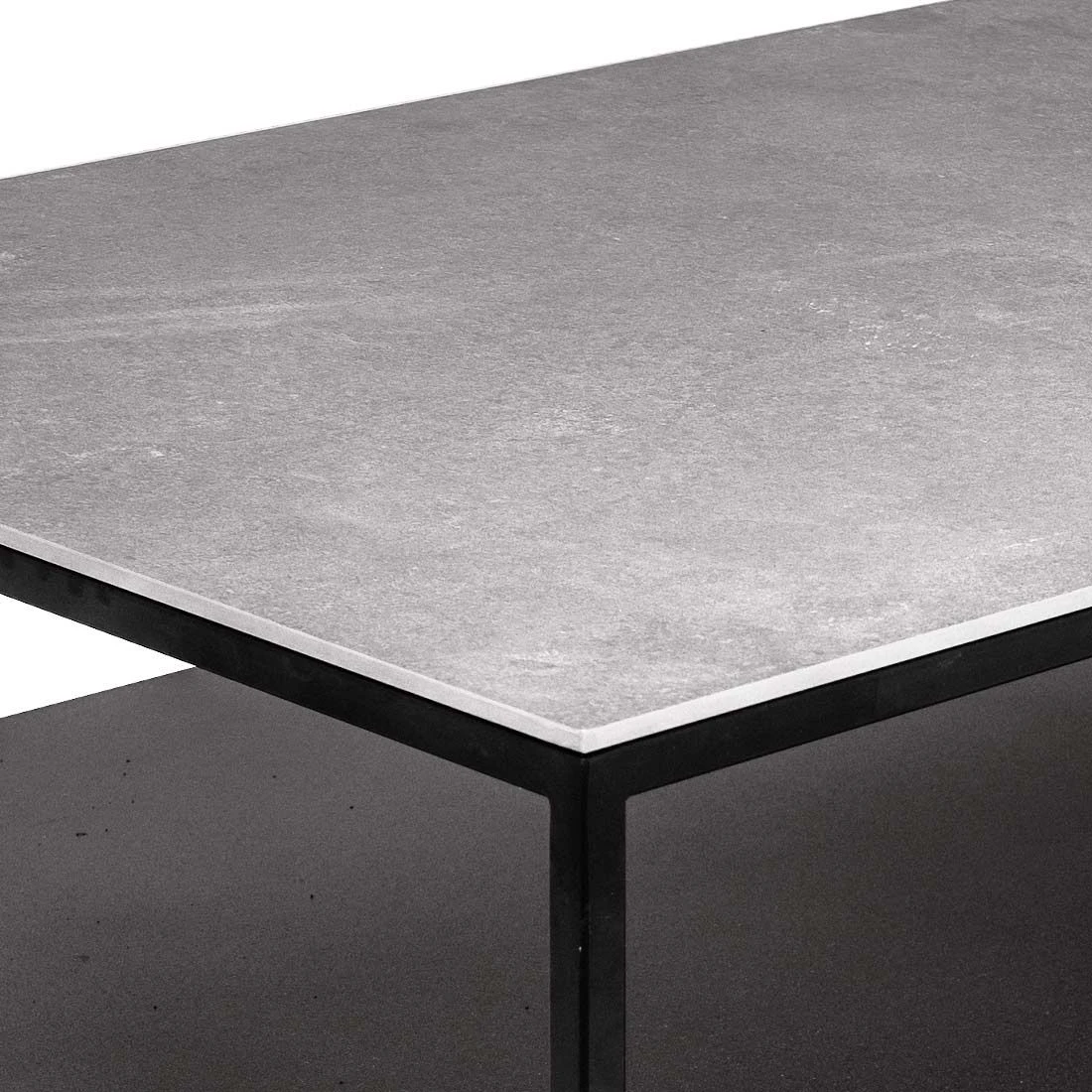 Optisch begeistert das Gestell in der Farbe Schwarz. Für die Tischplatte wird Keramik verarbeitet. Solche Platten sind stoß-, schlag- und schnittbeständig und zählen somit zu den stabilsten Tischplatten auf dem Gartentisch-Markt. Die Tischplatte ist Betongrau.