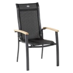 Damit der Stapelsessel optisch ansprechend ist, sind die Sitzfläche und der Bezug im Farbton Schwarz gehalten. Das Gestell ist aus Aluminium gefertigt. Dadurch lassen sich die Möbel leicht von einem Standort zum nächsten transportieren und sind dennoch sehr stabil. Optisch ansprechend ist die Farbgebung der Gestelle in Dunkelgrau. Ein weiteres Highlight ist die Bespannung der Sitzflächen mit Textilene. Dieses Material zeichnet sich durch eine hohe Robustheit gegenüber Hitze und Frost aus und ist leicht zu reinigen.