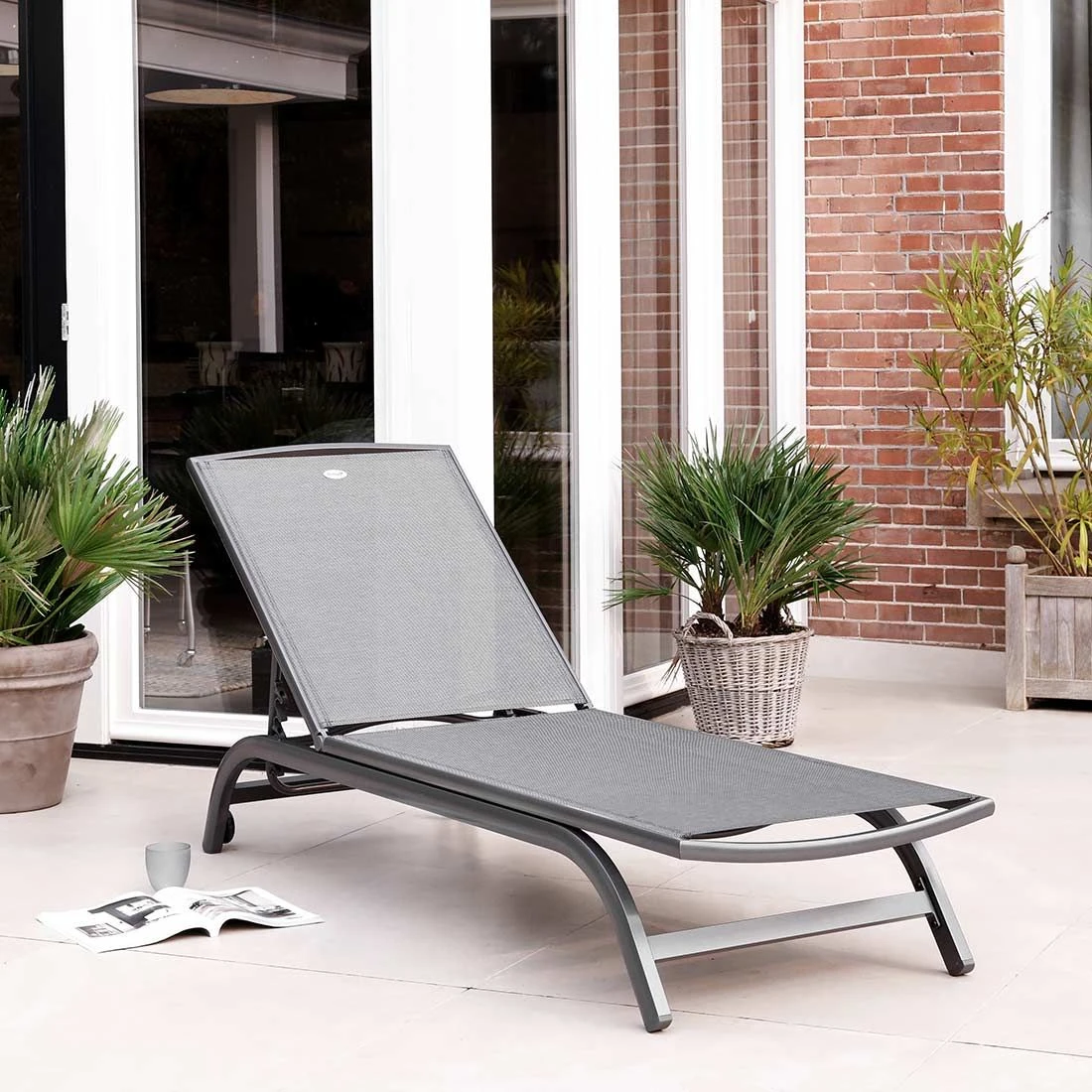 Für die Herstellung des Gestells wird hochwertiges und wetterfestes Aluminium verwendet. Farblich ist dieses in Dunkelgrau gehalten. Die Sitzfläche wird mit Textilene bespannt. Dieses Material ist reiß- und wetterfest und zeichnet sich durch eine hohe Beständigkeit gegenüber Hitze und Frost aus. Darüber hinaus ist Textilene leicht zu säubern. Die Farbgestaltung der Sitzfläche in Anthrazit ist äußerst ansprechend.