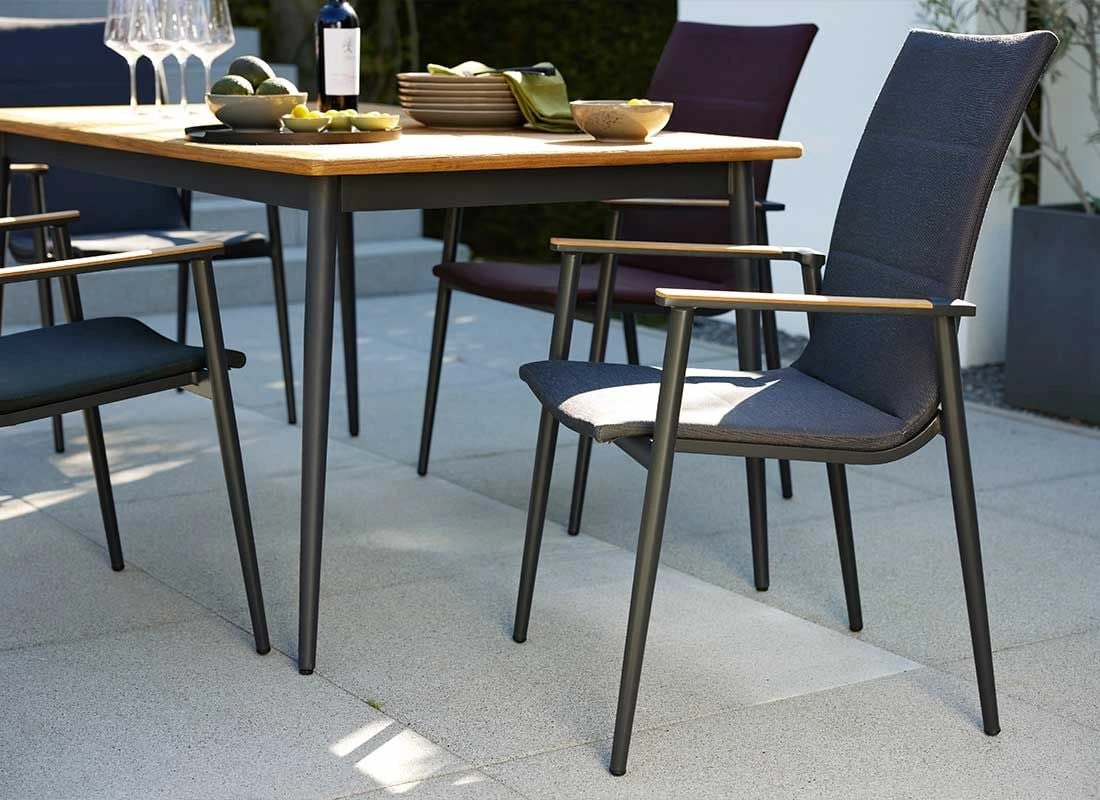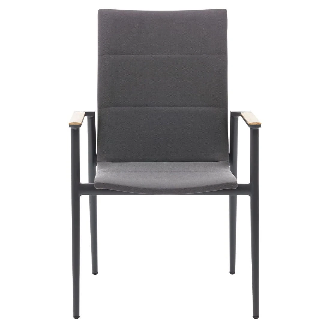 Das Gestell wird aus Aluminium in der Farbe Anthrazit gefertigt. Das geringe Eigengewicht des Materials macht den Stapelsessel zu einem robusten, aber dennoch leicht zu transportierenden Sitzmöbel auf Ihrer Terrasse.