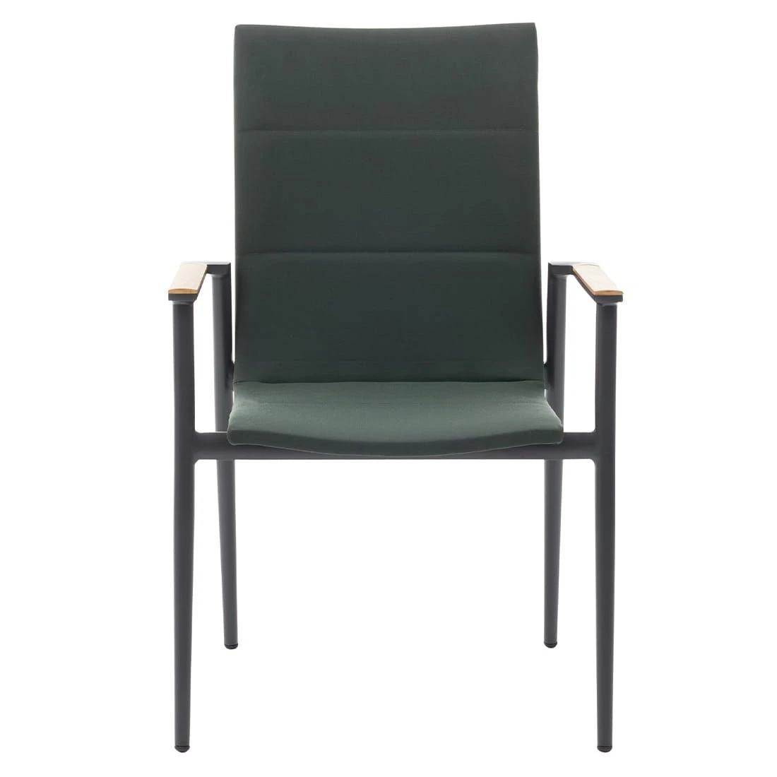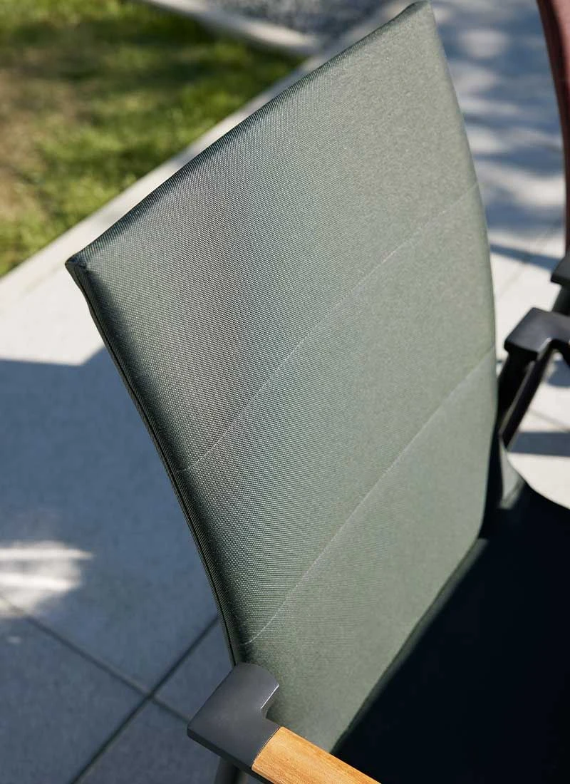 Ein weiteres Highlight des Stapelsessels ist die Bespannung mit Textilene in der Farbe Grün. Dieser Bezugsstoff überzeugt durch eine hohe Robustheit gegenüber Hitze und Frost aus und ist leicht zu reinigen. Der Stapelsessel ist zudem überdurchschnittlich stark belastbar (bis 140 kg) und somit äußerst robust. Der hohe Sitzkomfort ergibt sich auch aus der Sitzbreite von 45 cm und einer Sitztiefe von 43 cm. Unterstützt wird dies zudem durch die bequeme Sitzhöhe von 45 cm.