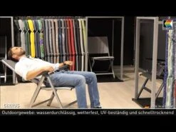 Für die Herstellung des Gestells wird hochwertiges und wetterfestes Aluminium verwendet. Für eine attraktive Optik ist das Gestell im Farbton Silber gehalten. Für die Bespannung der Sitzfläche wird hochwertiges Textilene verwendet. Es zeichnet sich durch eine hohe Robustheit gegenüber Hitze und Frost aus und ist leicht zu reinigen. Die Sitzfläche ist in ansprechendem Anthrazitgrau gehalten.