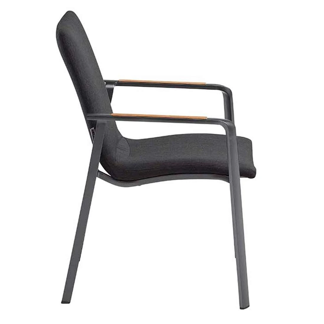 Für die Herstellung des Gestells wird hochwertiges und wetterfestes Aluminium verwendet. Für eine attraktive Optik ist das Gestell im Farbton Anthrazit gehalten. Die Sitzfläche ist mit Sunbrella bezogen. Dieses Material ist besonders widerstandsfähig gegen UV-Strahlung. Die Farbgestaltung der Sitzfläche in Sooty ist überaus ansprechend.