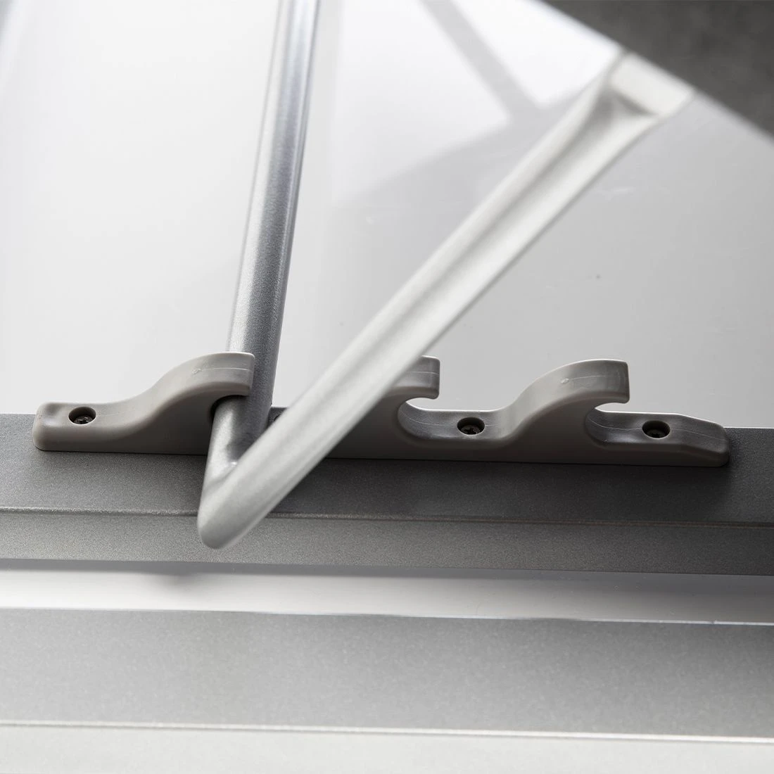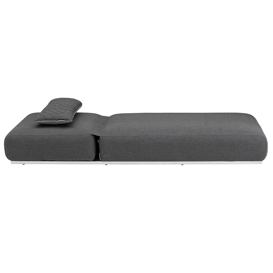 Das Gestell besteht aus pflegeleichtem und wetterfestem Aluminium. Farblich ist dieses in Silber gehalten. Die Sitzfläche ist mit Sunbrella bezogen. Dieses Material ist besonders widerstandsfähig gegen UV-Strahlung. Für den Bezug wird ein hochwertiger Sunbrella-Stoff genutzt. Er zeichnet sich durch besonders hohe Robustheit gegenüber Hitze und Frost aus und ist leicht zu reinigen. Damit die Gartenliege optisch ansprechend ist, sind die Sitzfläche und der Bezug im Farbton Dunkelgrau gehalten.