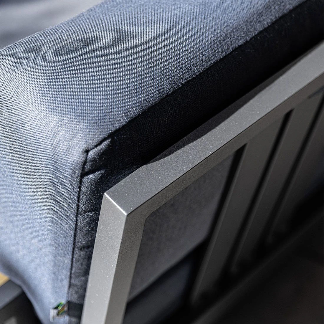 Das Gestell wird aus Aluminium in der Farbe Anthrazit matt gefertigt. Die Sitzfläche ist aus einem robusten Acrylstoff gefertigt.