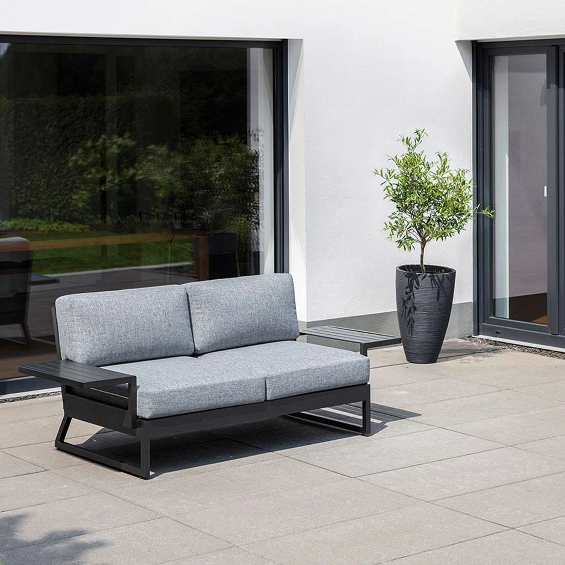 Das Gestell und die Tischplatte bestehen aus Aluminium. Damit das Gartensofa optisch ansprechend ist, sind das Gestell und die Tischplatte im Farbton Anthrazit gehalten. Für die Sitz- bzw. Rückenfläche wird Olefin verwendet. Der Marken-Outdoorstoff überzeugt mit einer hohen Witterungsbeständigkeit. Denn sowohl Sonne als auch Regen können dem robusten Outdoor-Stoff kaum etwas anhaben.