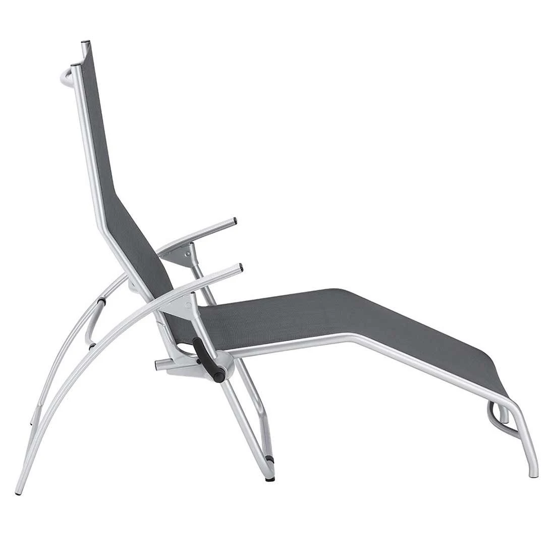 Für die Herstellung des Gestells wird hochwertiges und wetterfestes Aluminium verwendet. Für eine attraktive Optik ist das Gestell im Farbton Silber gehalten. Für die Sitzfläche und den Bezug kommt Batyline® zum Einsatz. Ein Pluspunkt von Batyline ist die hohe Reißfestigkeit und die besondere Widerstandsfähigkeit gegenüber UV-Strahlung. Damit die Bäderliege optisch ansprechend ist, sind die Sitzfläche und der Bezug im Farbton Anthrazit gehalten.