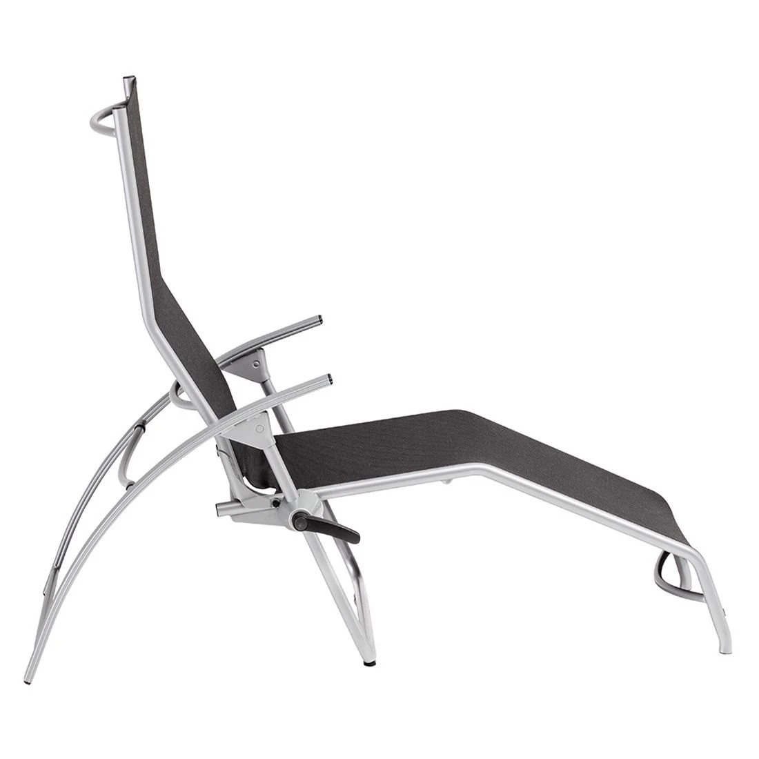 Das Gestell besteht aus pflegeleichtem und wetterfestem Aluminium. Farblich ist dieses in Silber gehalten. Für die Bespannung der Sitzfläche wird hochwertiges Textilene verwendet. Es zeichnet sich durch eine hohe Robustheit gegenüber Hitze und Frost aus und ist leicht zu reinigen. Die Sitzfläche ist in ansprechendem Charcoal gehalten.