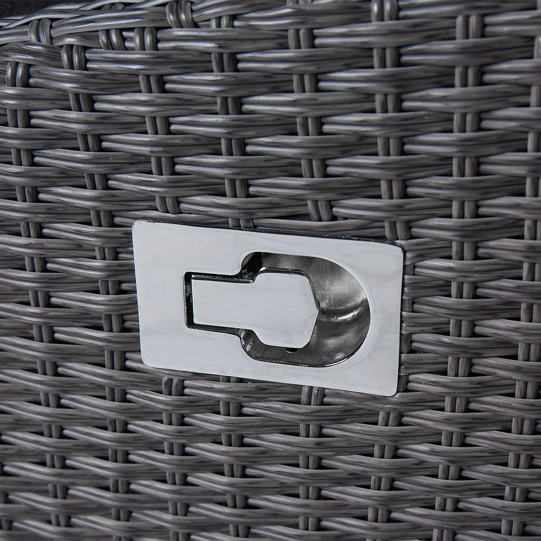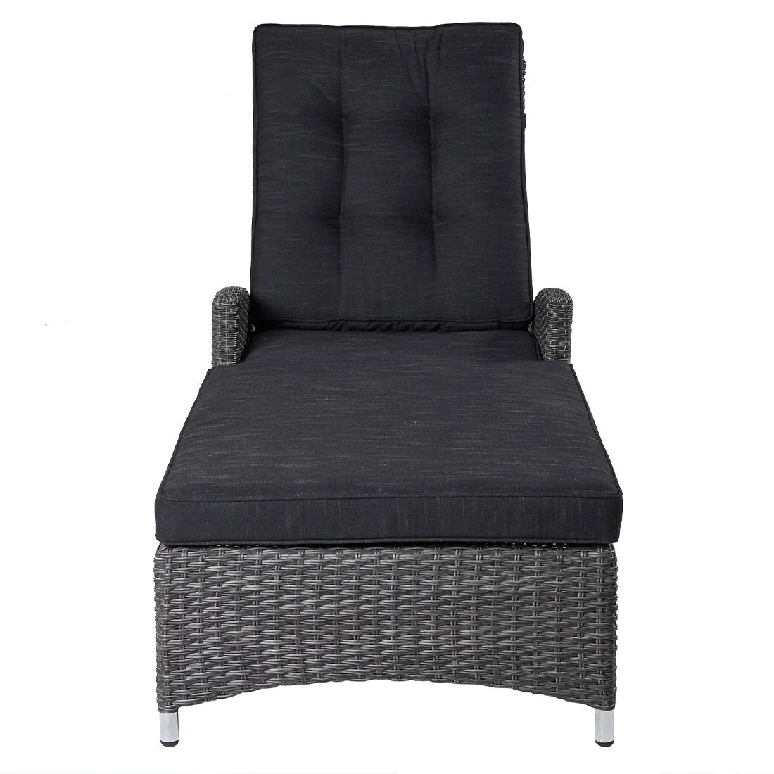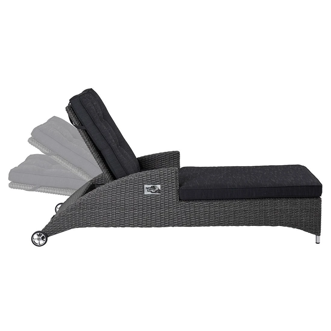 Für die Herstellung des Gestells wird hochwertiges und wetterfestes Aluminium verwendet. Für eine attraktive Optik ist das Gestell im Farbton Anthrazit gehalten. Die Sitzfläche ist in ansprechendem Grau-Mix gehalten. Als hochwertiges Material für den Bezug kommt ein Polyester-Stoff zum Einsatz. Er ist sehr strapazierfähig und bietet somit die idealen Voraussetzungen für den Einsatz im Freien. Den finalen Schliff erhält diese Gartenliege durch den Bezug in Schwarz.