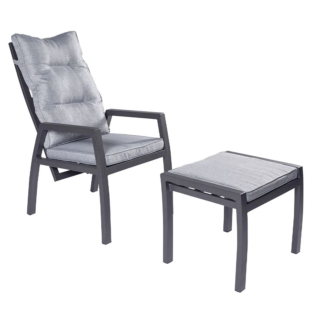 Der Gartenhocker ist vollständig aus Aluminium gefertigt. Dies erzeugt nicht nur ein robustes, sondern auch einheitliches Bild des attraktiven Sitzmöbels. Als hochwertiges Material für den Bezug kommt ein Polyester-Stoff zum Einsatz. Er ist sehr strapazierfähig und bietet somit die idealen Voraussetzungen für den Einsatz im Freien. Mit einer Belastbarkeit von 110 kg ist dieses Sitzmöbel äußerst robust.