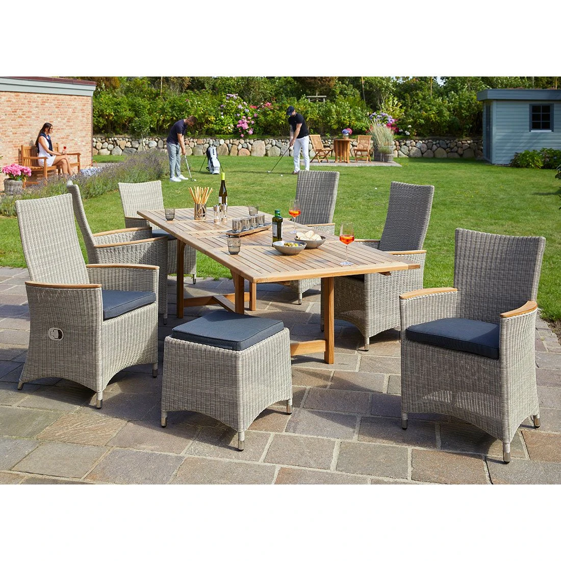Des Weiteren begeistert das Set mit einer Ausziehfunktion am Tisch, sodass er sich bei Bedarf bequem vergrößern lässt. Die Rückenlehnen des Gartenmöbel-Sets von LC Garden lassen sich stufenlos verstellen. Somit bietet Ihnen das Gartenmöbel-Set zu jeder Zeit die richtige Position – ganz gleich, ob Sie essen, lesen oder einfach entspannen möchten.