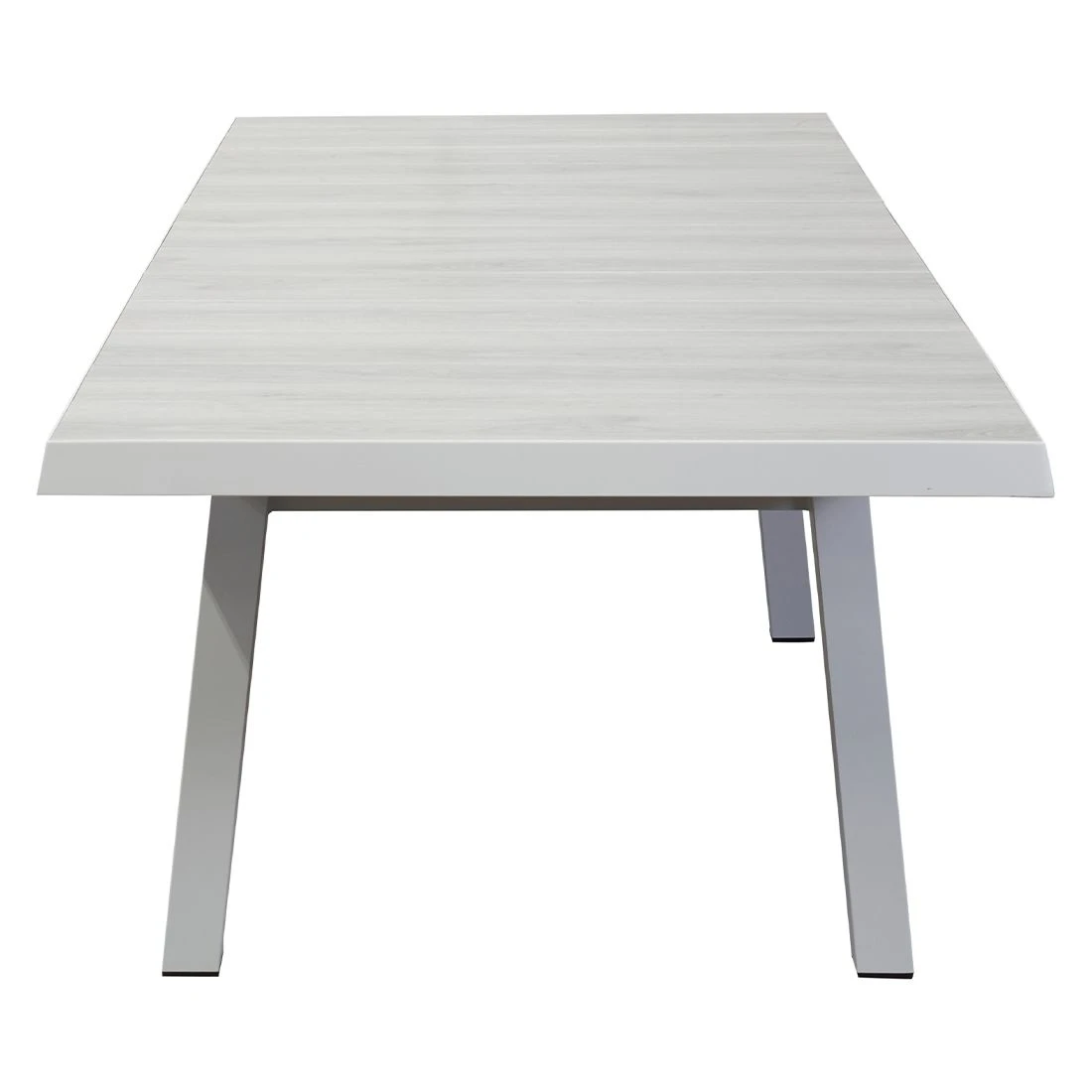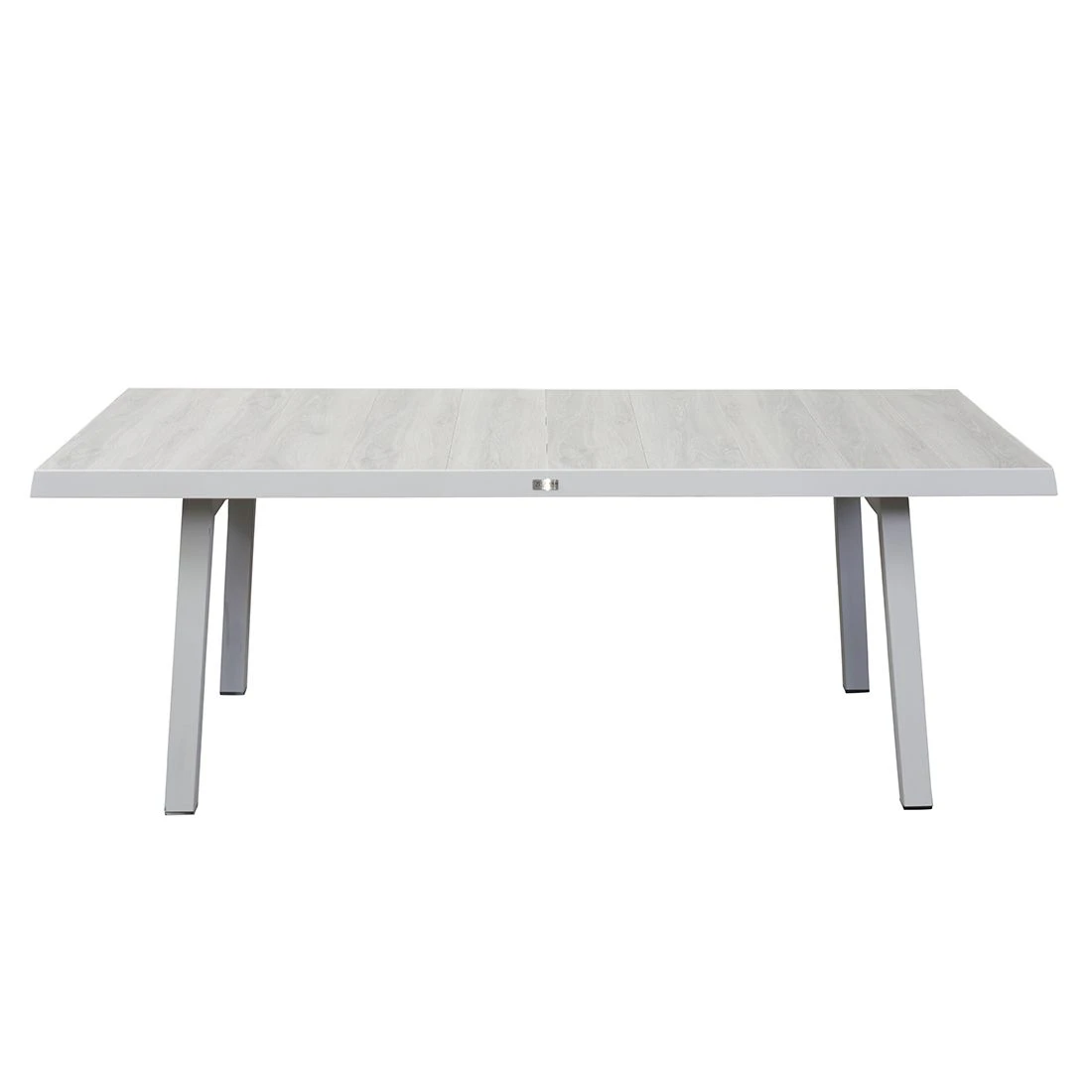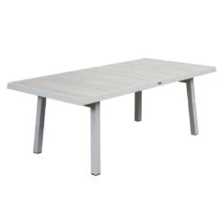 Das Gestell des eleganten Tisches besteht aus Aluminium. Das klassische Vierfuß-Gestell garantiert Ihnen maximale Beinfreiheit. Die Tischplatte ist aus wertigem Keramik gefertigt. Im Gegensatz zu vielen anderen Tischplattenmaterialien sind Keramikplatten äußerst kälte- und hitzebeständig und zählen somit zu den robustesten Tischplatten auf dem Markt. Für ein elegantes Gesamtbild erscheint die Platte in der Farbe Easy Grey. Mit der rechteckigen Form lässt sich Gartensessel platzsparend in Ecken oder an Häuserwänden aufstellen.