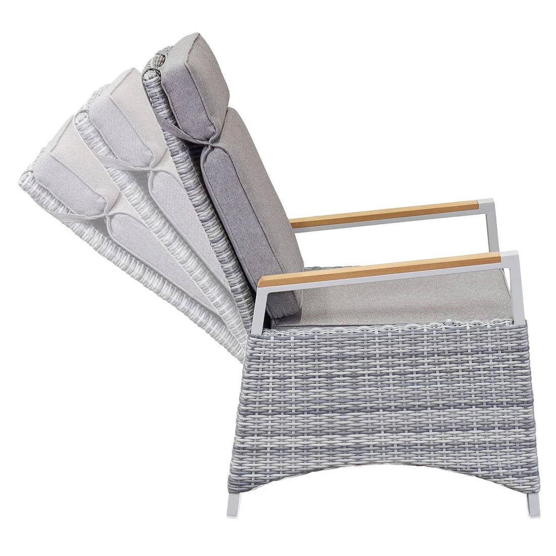 Der Loungesessel von LC Garden lässt sich stufenlos verstellen. Somit bietet die Rückenlehne Ihnen zu jeder Zeit die richtige Position – ganz gleich, ob Sie essen, lesen oder einfach entspannen möchten. Die Sitzbreite von 56 cm und die Sitztiefe von 59 cm machen den Loungesessel besonders komfortabel. Die Sitzhöhe liegt zudem bei angenehmen 37,5 cm.