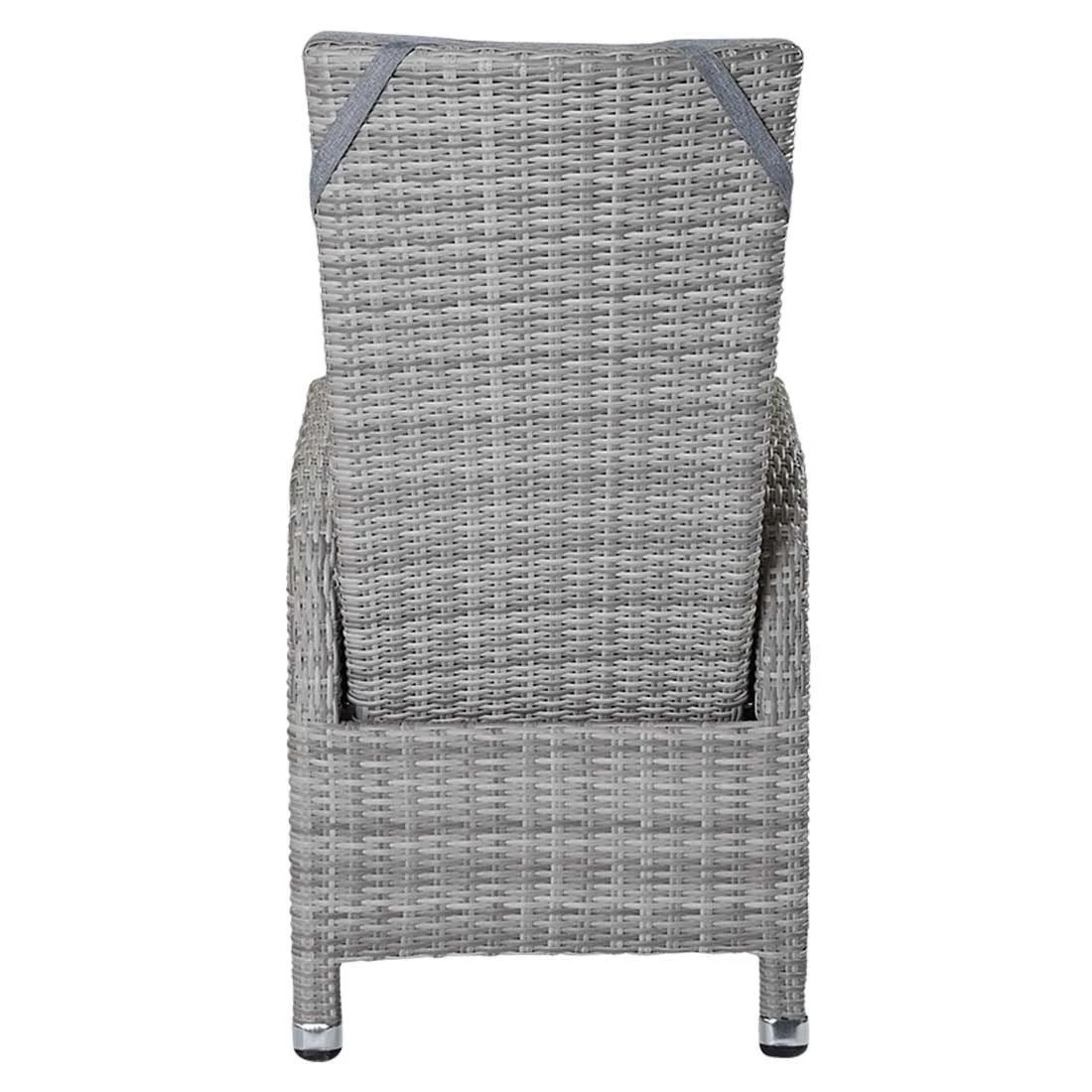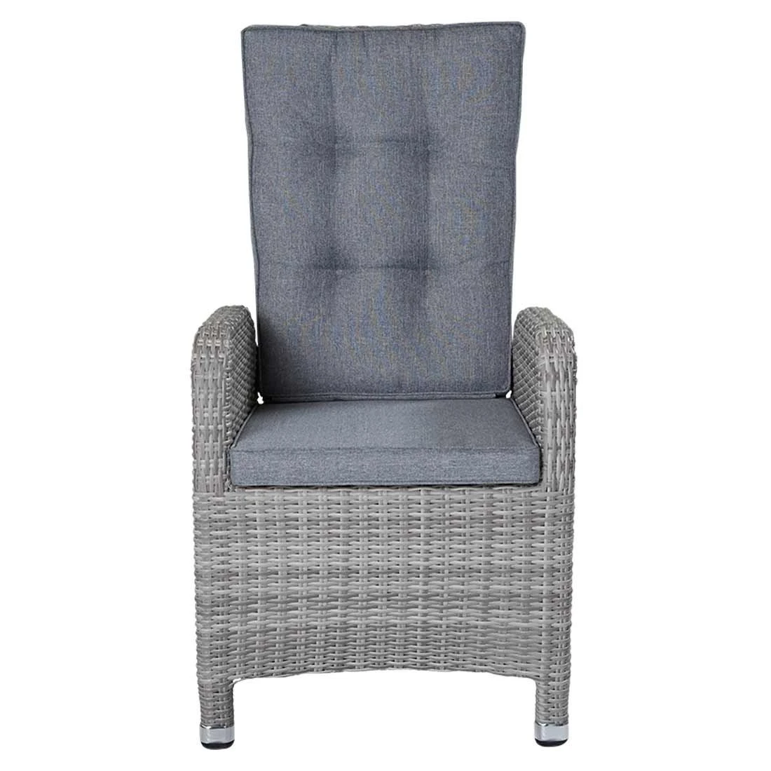Für den Korpus und die Sitzfläche kommt Polyrattan-Geflecht zum Einsatz. Das Gestell wird aus Aluminium gefertigt. Das geringe Eigengewicht des Materials macht den Gartensessel zu einem robusten, aber dennoch leicht zu transportierenden Sitzmöbel auf Ihrer Terrasse. Als hochwertiges Material für den Bezug kommt ein Polyester-Stoff zum Einsatz. Er ist sehr strapazierfähig und bietet somit die idealen Voraussetzungen für den Einsatz im Freien. Farblich begeistert der Bezug in elegantem Light Grey. Damit der Gartensessel optisch ansprechend ist, sind das Gestell und die Sitzfläche im Farbton Grau gehalten.