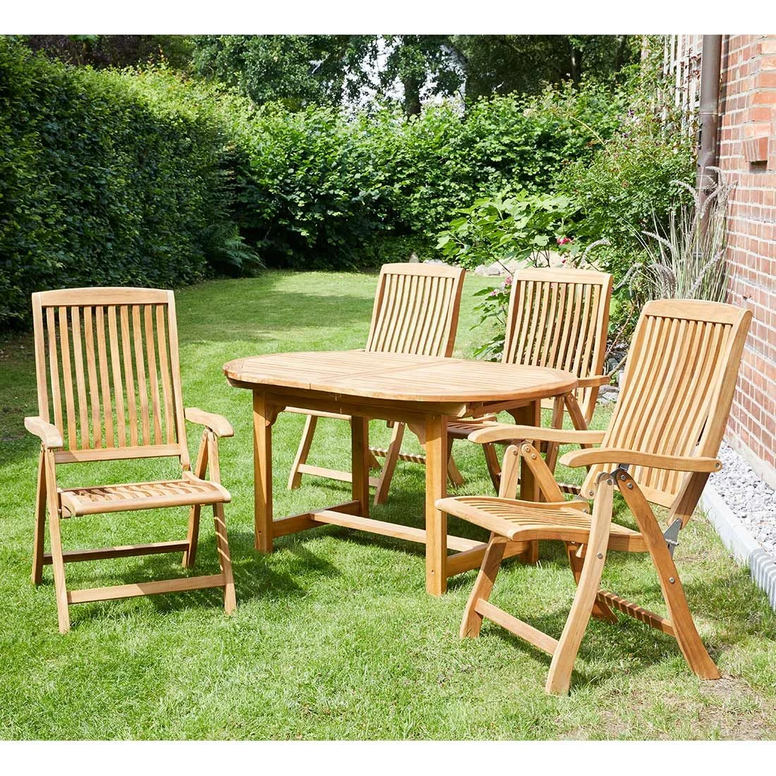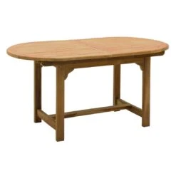 Klassisch aus vier Tischbeinen besteht das Gestell des Tisches. Der Ausziehtisch ist komplett aus Teakholz gefertigt und gibt so ein charmantes, einheitliches Bild auf der Terrasse ab. Für ein elegantes Gesamtbild erscheint die Platte in der Farbe Natur. Zudem begeistert der Ausziehtisch mit der ovalen Form als wahrer Blickfang auf Ihrer Terrasse.