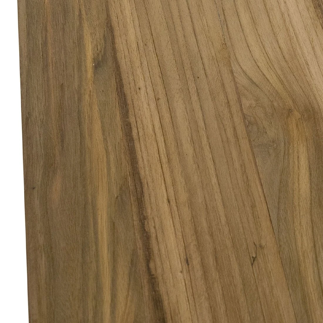 Das Gestell besteht aus pflegeleichtem und rostfreiem Edelstahl. Optisch ist das Gestell in Anthrazit gehalten. Die Gebrauchsspuren in der Tischplatte sind Teil des Designs. Denn die Tischplatte ist aus recyceltem Teak hergestellt worden, das zuvor aus alten Hütten und Booten gewonnen wurden. Bei der Aufarbeitung werden dann Einkerbungen, Nagel- und Schraublöcher bewusst erhalten. Jede Tischplatte und damit jeder Gartentisch ist also ein echtes Unikat. Für ein stimmiges Gesamtbild erscheint die Platte in der Farbe Natur. Das elegante Stativ-Gestell garantiert Ihnen maximale Beinfreiheit. Der Gartentisch ist klassisch rechteckig gestaltet.
