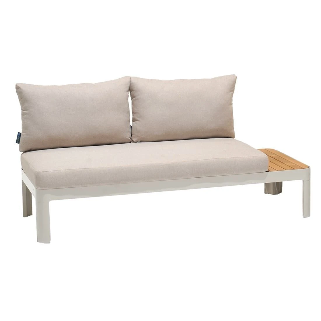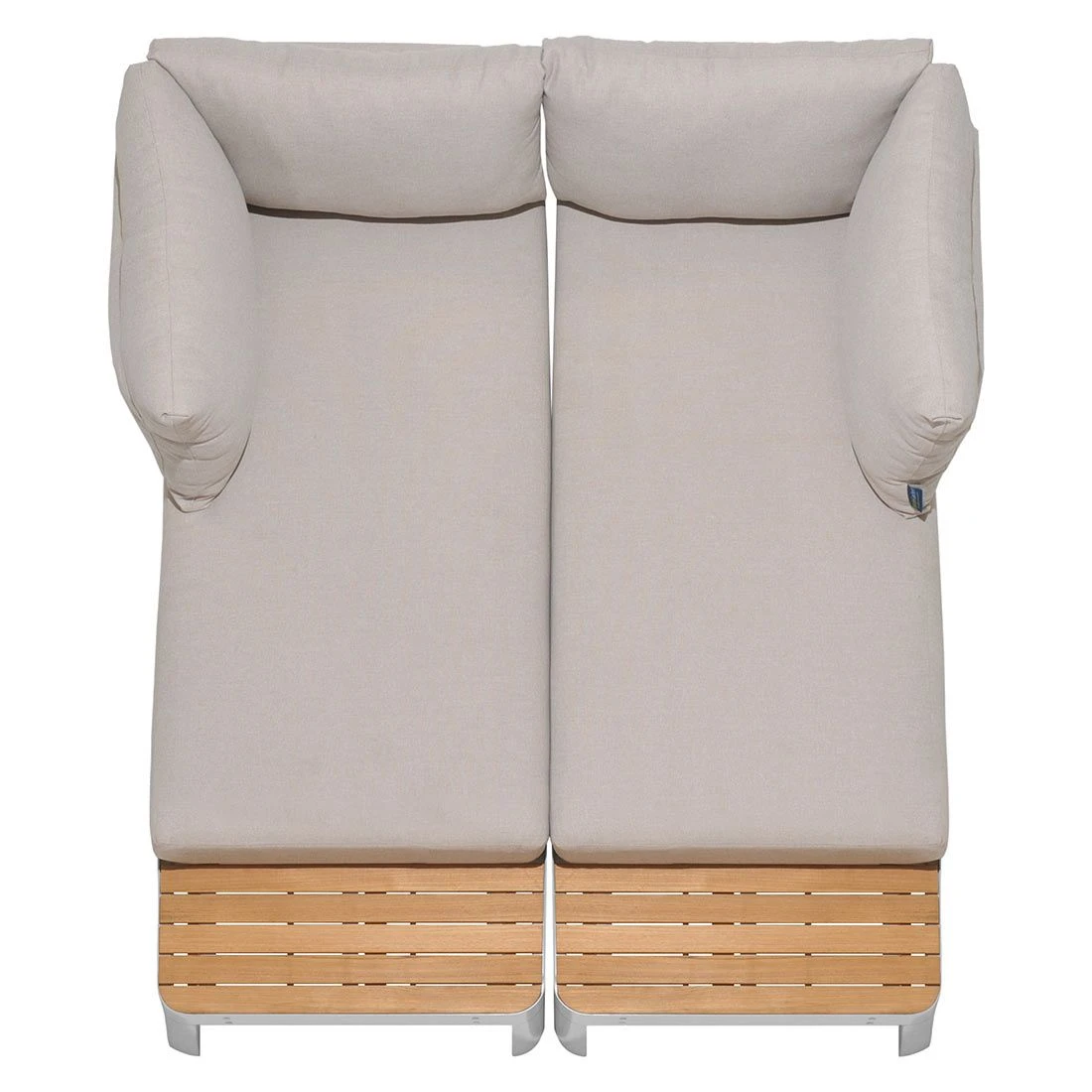 Als Gestellmaterial hat der Hersteller qualitativ hochwertiges Aluminium gewählt. Optisch begeistert das Gestell in der Farbe Korallensand. Die wetterfeste Sitzfläche aus Teakholz bringt ein natürliches Flair auf Ihre Terrasse. Die Bezüge sind aus dem Marken-Outdoorstoff Olefin gefertigt. Das Material verbindet eine angenehme Stoffoberfläche mit hoher Witterungsbeständigkeit. Denn sowohl Sonne als auch Regen können dem robusten Outdoor-Stoff kaum etwas anhaben. Die Farbe des Bezugs ist Beige.