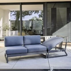 Kettler Ocean Skid Modular Eck-/Endmodul Aluminium/Olefin Mit Teak-Leiste Anthrazit/Hellgrau Meliert