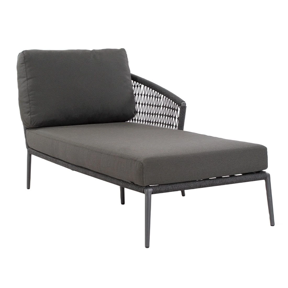Damit das Daybed optisch ansprechend ist, sind der Korpus, die Sitzfläche und der Bezug im Farbton Grau gehalten. Das Gestell besteht aus Aluminium. Optisch begeistert das Gestell in der Farbe Anthrazit. Hochwertiges Rope umgibt das robuste Gestell und verleiht dem Daybed damit einen ganz besonderen Look. Die Sitzfläche ist angenehm gepolstert.