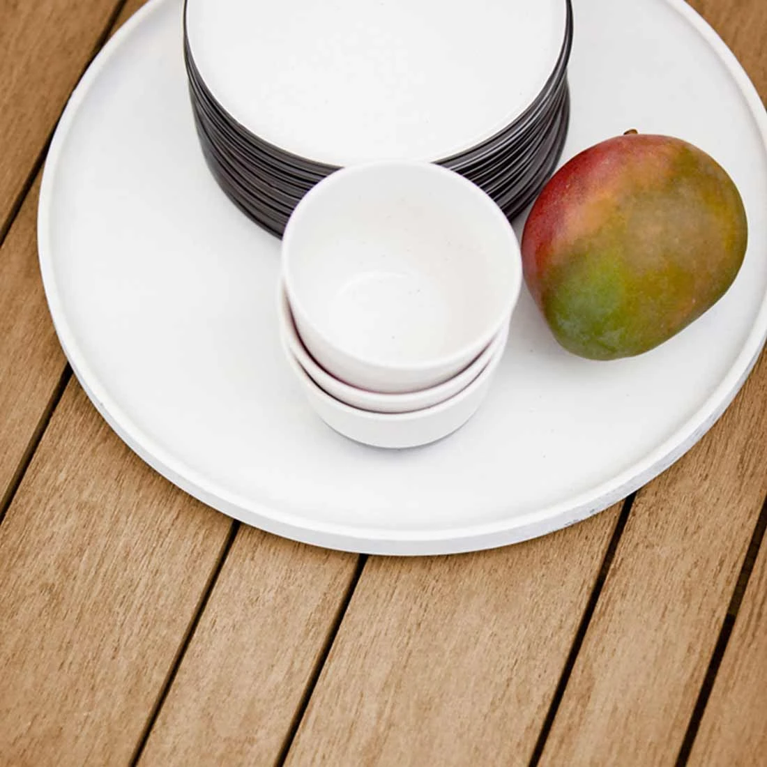 Teak ist enorm widerstandsfähig gegen Witterungseinflüsse wie Schwankungen der Temperatur, Nässe und Trockenheit. Kein Wunder, dass das hochwertige Hartholz als Material für die Tischplatte ausgewählt wurde.