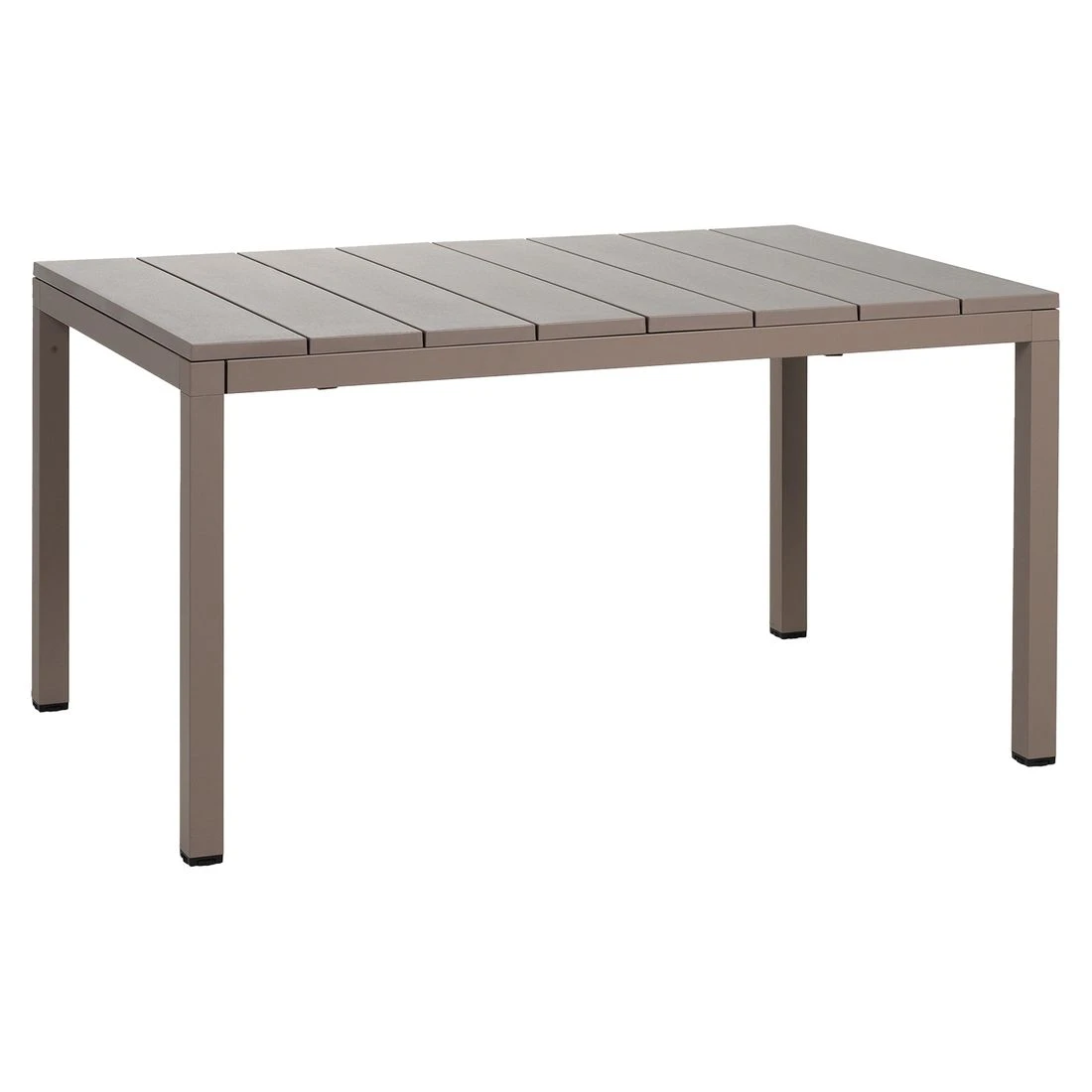 Aufgrund seines Gestells aus Aluminium zählt der Ausziehtisch Rio zu den modernen Tischmodellen, die sich im Garten ganz einfach aufstellen und bewegen lassen. Als klassische Design-Komponente fungiert das geradlinige Vierfußgestell. Als Material für die Tischplatte wird praktischer Kunststoff verarbeitet. Für ein stimmiges Gesamtbild erscheint die Platte in der Farbe Taupe. Mit der rechteckigen Form lässt sich der Ausziehtisch platzsparend in Ecken oder an Häuserwänden aufstellen.