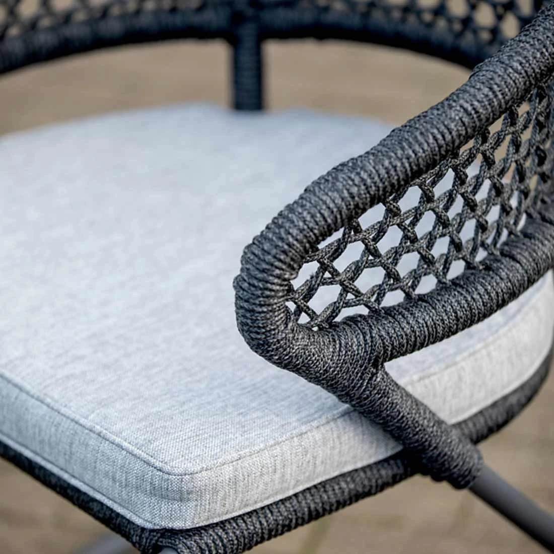 Das Gestell wird aus Aluminium gefertigt. Das geringe Eigengewicht des Materials macht den Gartensessel zu einem robusten, aber dennoch leicht zu transportierenden Sitzmöbel auf Ihrer Terrasse. Für eine attraktive Optik ist das Gestell im Farbton Anthrazit gehalten. Die Sitzfläche des Gartensessels ist mit langlebigem Olefin bespannt. Die Sitzfläche hat eine schöne Farbgebung in Hellgrau.