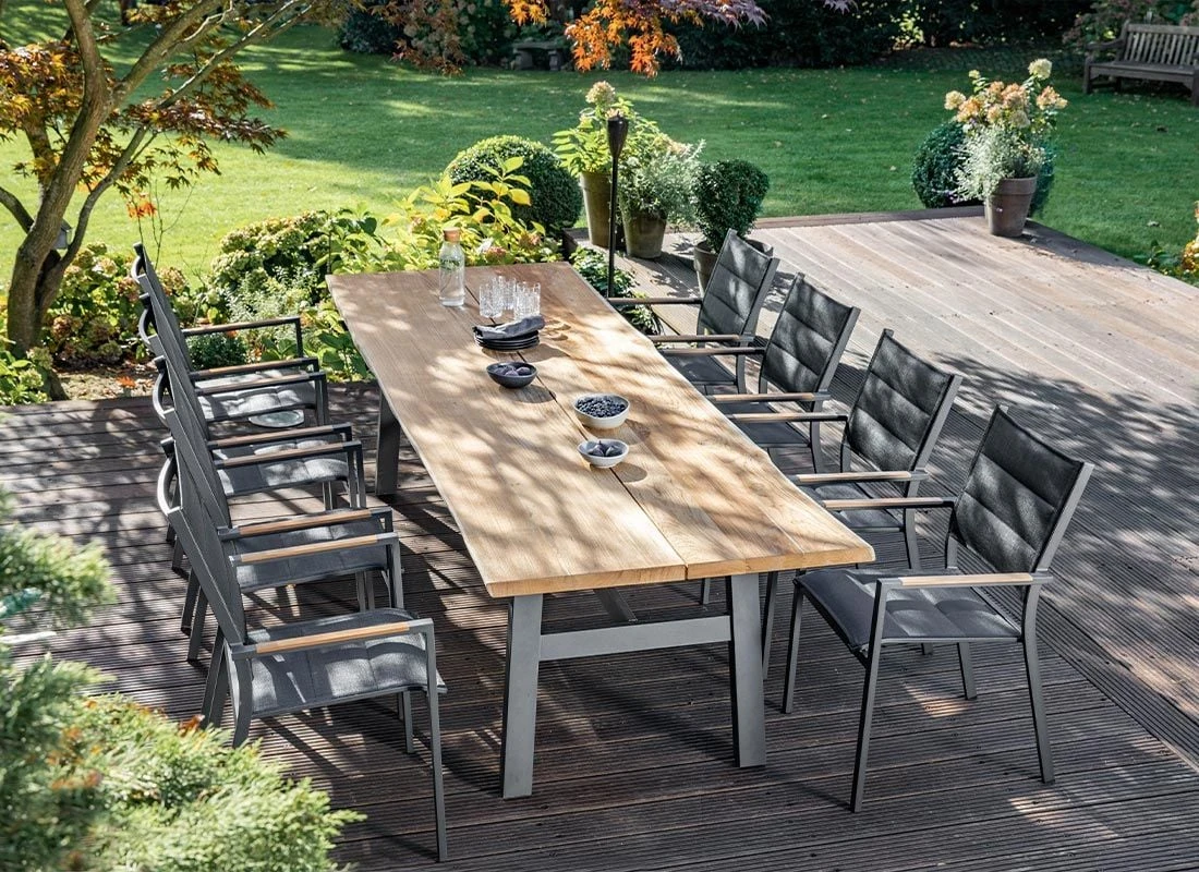 Draußen schöner wohnen – mit Produkten von Niehoff Garden. Niehoff ist seit mehr als 40 Jahren ein Begriff für schöne Esszimmer. Als familiengeführtes Unternehmen bietet es seit 1978 eine große Auswahl an Esstischen, Stühlen und Bänken an. Und weil Niehoff selbst gemütliche Runden mit Freunden und Familie liebt, hat das Unternehmen bei sommerlichen Essen draußen immer wieder große Tische und passende Stühle vermisst. So kamen die Designer auf die Idee, Niehoff Garden zu gründen und zu einer Marke für hochwertige Gartenmöbel weiterzuentwickeln. Tradition und Innovation gehen bei dabei Hand in Hand: Die langjährige Erfahrung im Indoor-Bereich verleiht den Experten ein besonderes Gespür für Materialien und einen geschärften Sinn für Qualität.