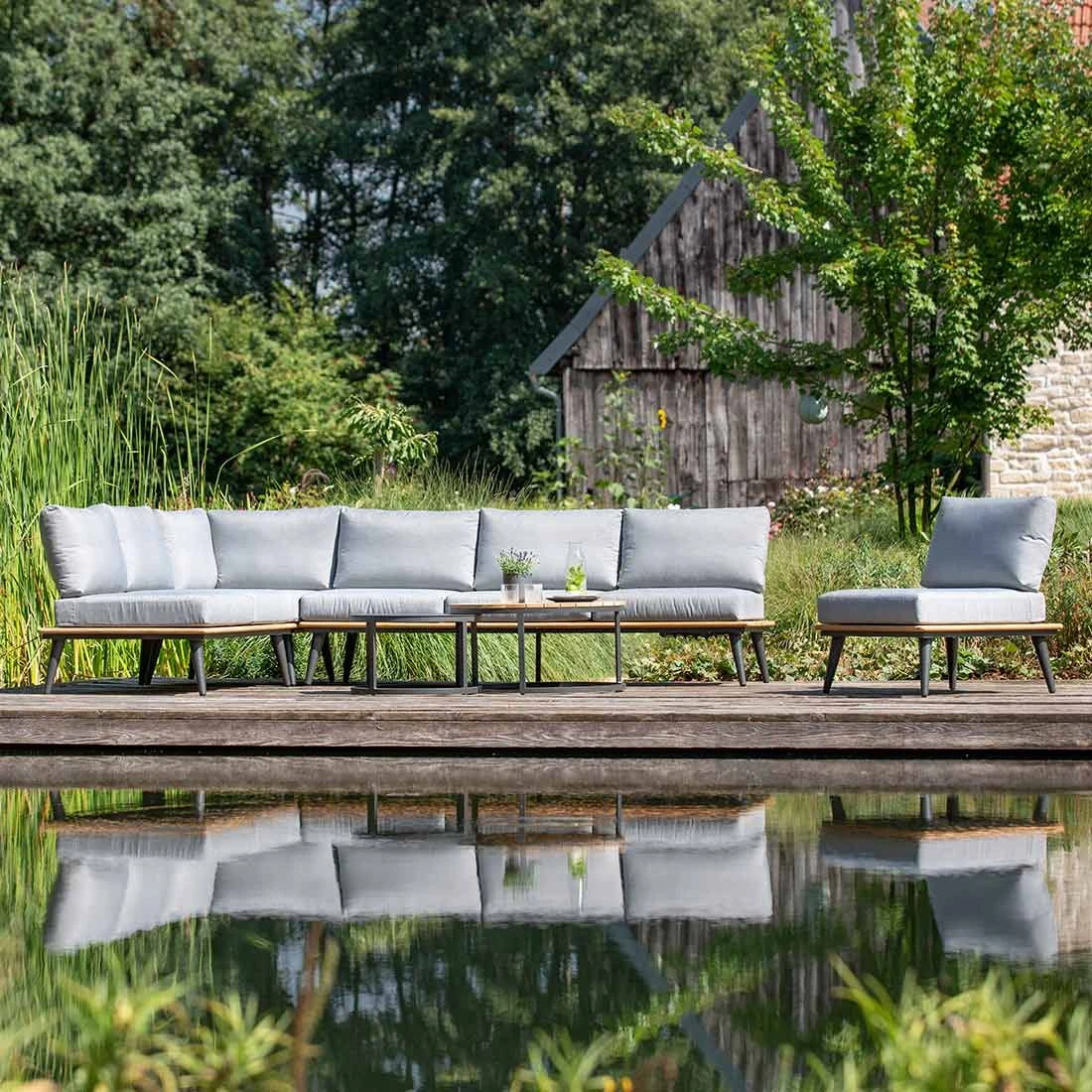 Verlagern Sie das Wohnzimmer nach draußen. Denn mit der gemütlichen Ecklounge Serra von Niehoff kreieren Sie sich eine gemütliche Sitzecke, die zum Kuscheln und Feiern einlädt. Die Ecklounge ist in L-Form mit unterschiedlich langen Schenkeln gestaltet.