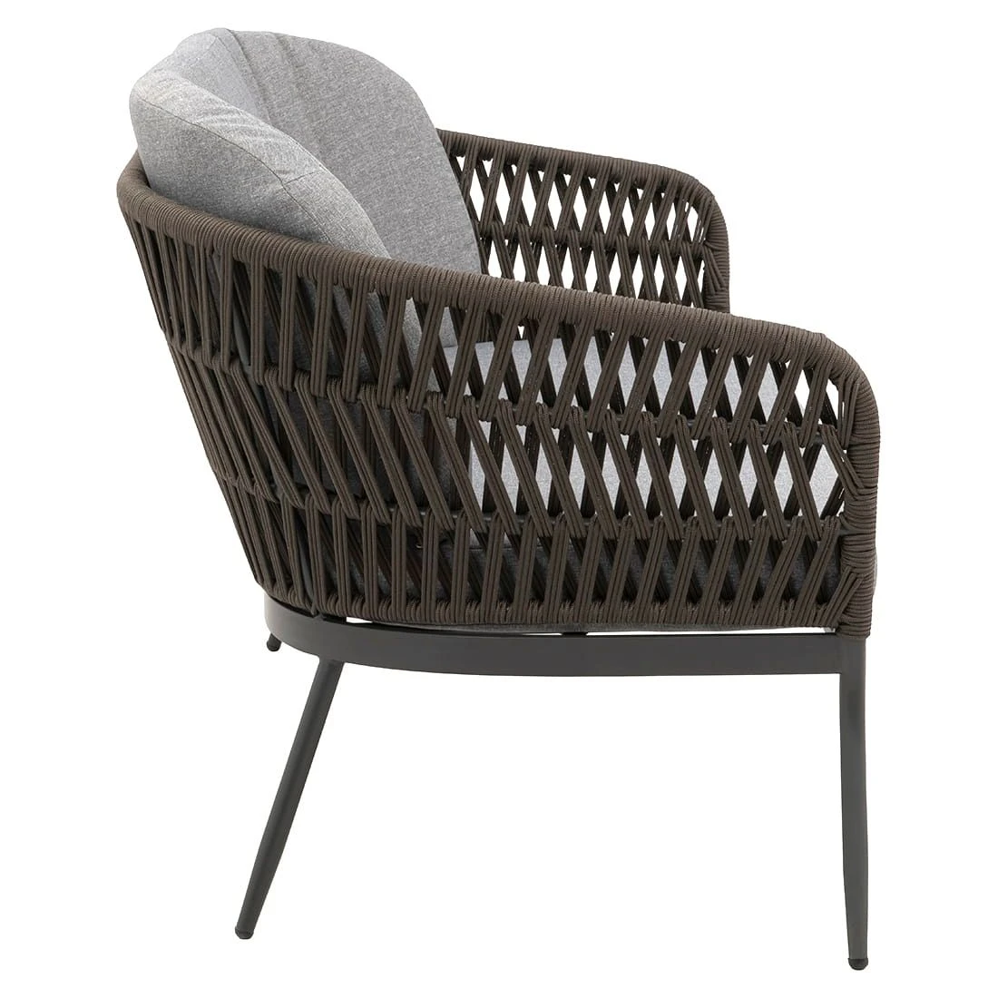 Das Gestell besteht aus Aluminium. Optisch begeistert das Gestell in der Farbe Anthrazit. Hochwertiges Rope umgibt das robuste Gestell und verleiht dem Gartensofa damit einen ganz besonderen Look. Die Sitzfläche ist angenehm gepolstert. Die Farbe des Bezugs ist Taupe.