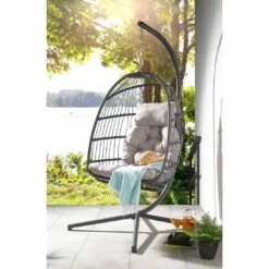 Nur wenig Platz, um den Hängesessel im Winter einzulagern? Kein Problem, denn diese Liege ist klappbar und somit kompakt zu verstauen. Der hohe Komfort ergibt sich auch aus der Breite von 83 cm und einer Tiefe von 108 cm. Unterstützt wird dies zudem durch die bequeme Sitz- bzw. Liegehöhe von 63 cm. Mit einer Belastbarkeit von 120 kg ist der Hängesessel ein sehr robustes Gartenmöbel. Weitere Detail-Informationen zu Materialien und Maßen finden Sie im Reiter „Eigenschaften“.