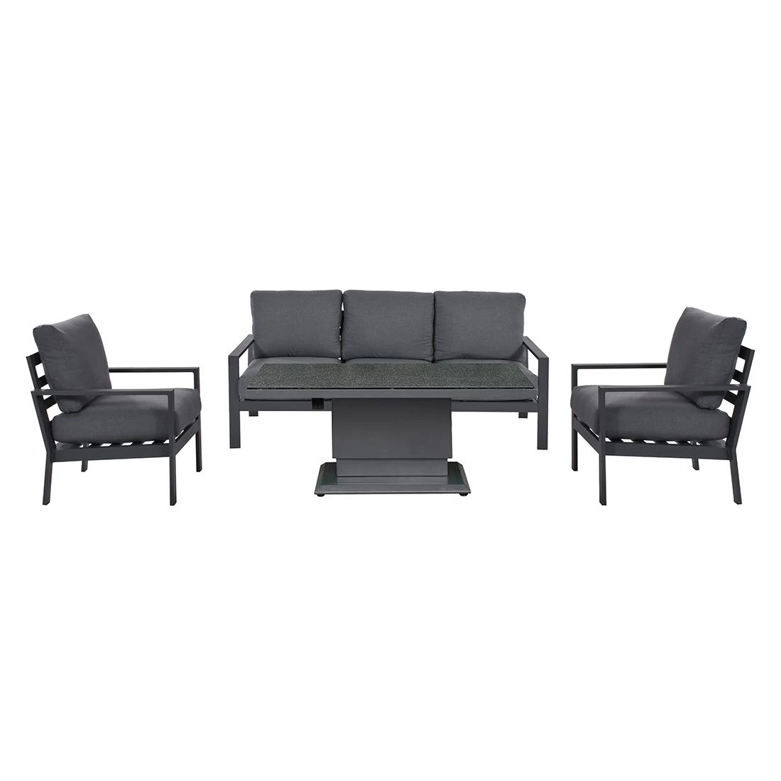Verbringen Sie die schönsten Tage des Jahres draußen – im heimischen Garten mit dem OUTLIV. Loungeset Atlanta, das genügend Platz für Familie und Freunde bietet. Ob Kaffeeklatsch oder ein Glas Wein am Abend, die gemütliche Lounge macht Ihre Terrasse zum absoluten Wohlfühlort. Der Clou: Neben dem gemütlichen Sitzbereich gehört auch ein eleganter Tisch zum Lieferumfang. Er überzeugt mit einer Tischplatte aus Spraystone im Farbton Anthrazit. Dadurch fügt er sich hervorragend in das Gesamtbild ein.