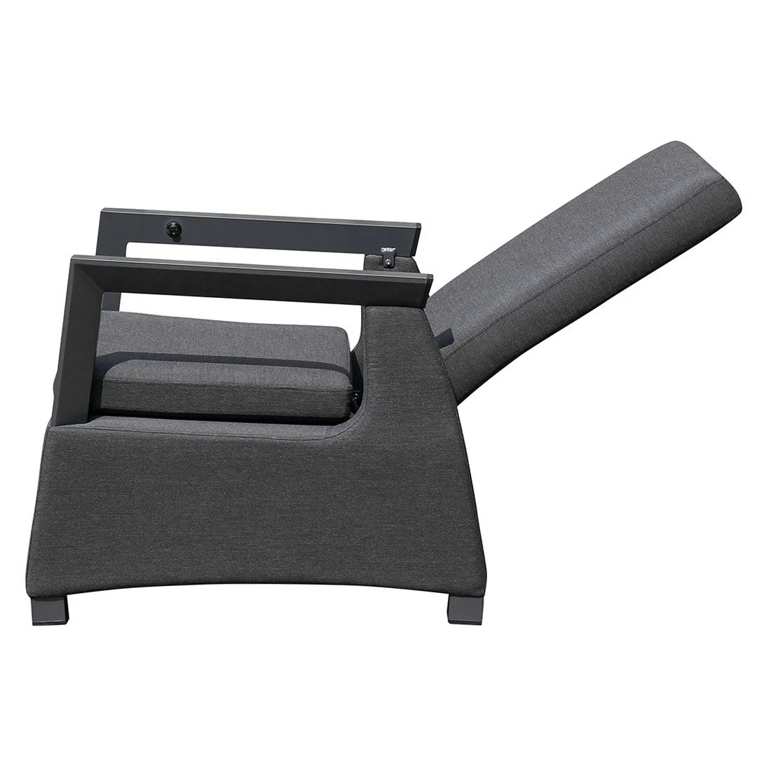 Das Gestell ist aus Aluminium gefertigt. Optisch begeistert das Gestell in der Farbe Anthrazit. Ein hochwertiges Material wird auch für die Sitzfläche verwendet: In diesem Fall kam der wasserabweisende und UV-beständige Markenstoff Sunbrella zum Einsatz. Auch schmutzabweisend und schimmelresistent – ideale Voraussetzungen für eine gepolsterte Lounge im Freien!