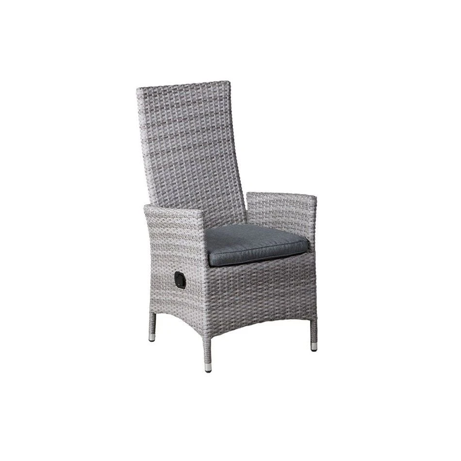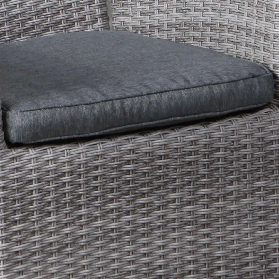 Der Korpus und die Sitzfläche bestehen aus Polyrattan-Geflecht. Das Gestell wird aus Aluminium gefertigt. Das geringe Eigengewicht des Materials macht den Gartensessel zu einem robusten, aber dennoch leicht zu transportierenden Sitzmöbel auf Ihrer Terrasse. Die Sitzfläche hat eine elegante Farbgebung in Grau-Braun. Farblich begeistert der Bezug in elegantem Anthrazit.