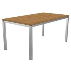 Als Gestellmaterial wird stabiler und rostfreier Edelstahl verwendet. Optisch ist das Gestell in Silber gehalten. Als Material für die Tischplatte wird das edle Hartholz Teak verwendet. Die Maserung des Holzes und der angenehme Farbton integrieren sich sehr schön in jegliche Arten der Garten- und Balkongestaltung und bescheren eine einzigartig natürliche Atmosphäre. Farblich ist die Platte in Teak Recycelt gehalten. Das klassische Vierfuß-Gestell garantiert Ihnen maximale Beinfreiheit. Die rechteckige Form ermöglicht es Ihnen, den Gartentisch in Ecken und an Häuserwänden platzsparend einzusetzen.