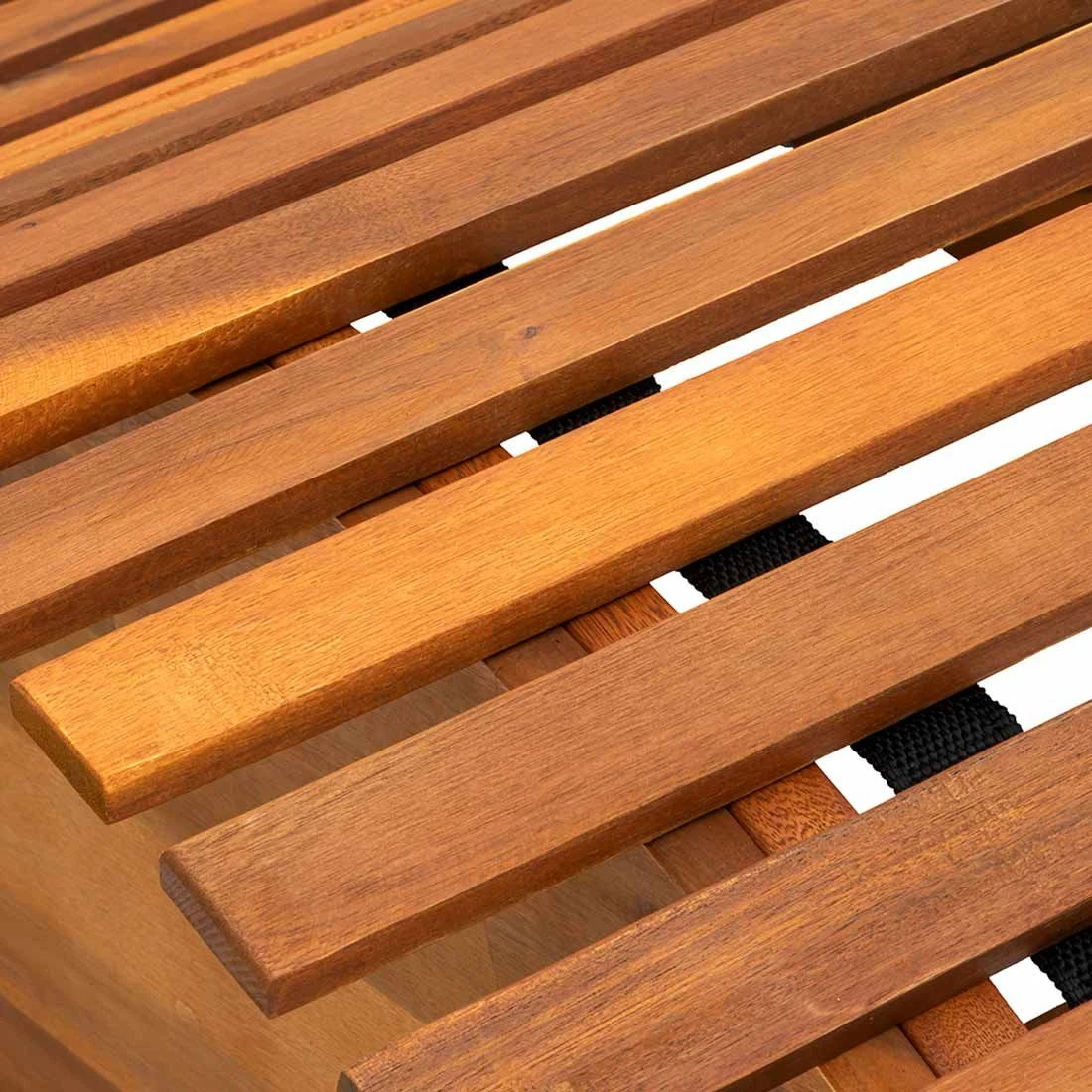 Die Gartenliege besteht vollständig aus Akazienholz. Dies erzeugt nicht nur ein geschmackvolles, sondern auch einheitliches Bild des attraktiven Möbels. Für ein perfekt stimmiges Gesamtbild sorgt die einheitliche Farbgebung in stilvollem Natur.