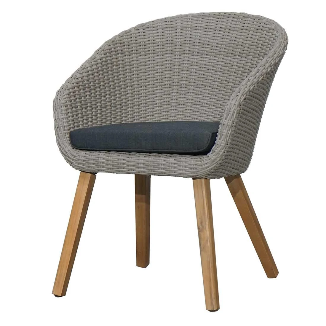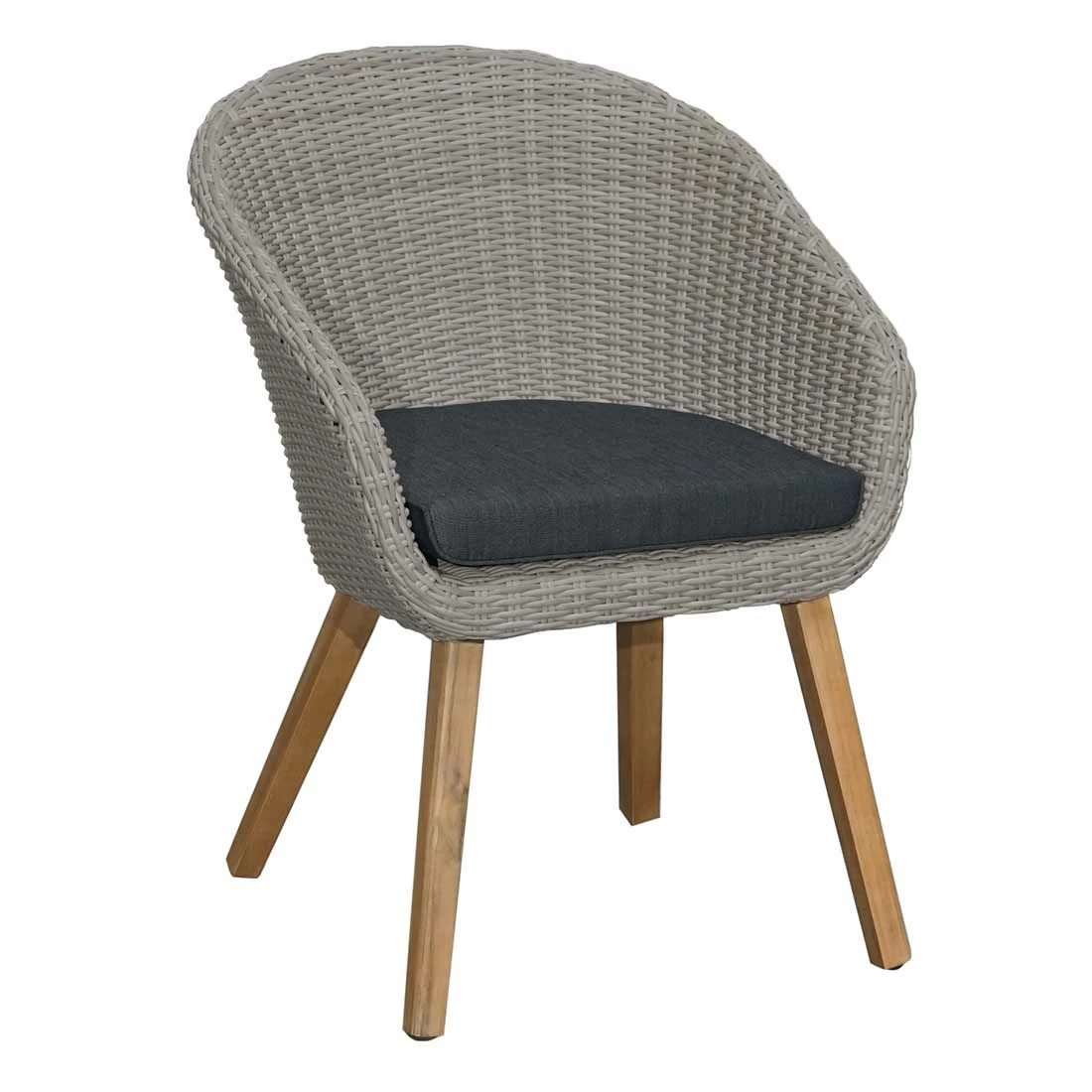 Allen Holzliebhabern wird gefallen, dass das Gestell des Gartensessels aus hochwertigem Akazienholz gefertigt wird. Optisch begeistert das Gestell in der Farbe Akazie. Das Gestell, das mit hochwertigem Polyrattan umflochten ist, bringt ein natürliches Ambiente auf Ihre Terrasse. Dieses Material zeichnet sich durch eine hohe Wetterbeständigkeit aus. Der Korpus ist farblich in geschmackvollem Grau gestaltet. Die Sitzflächen werden aus Polyester gefertigt. Für eine längere Haltbarkeit empfehlen wir bei stärkerem oder lang anhaltendem Regen die abnehmbaren Kissen im Innenraum zu lagern.
