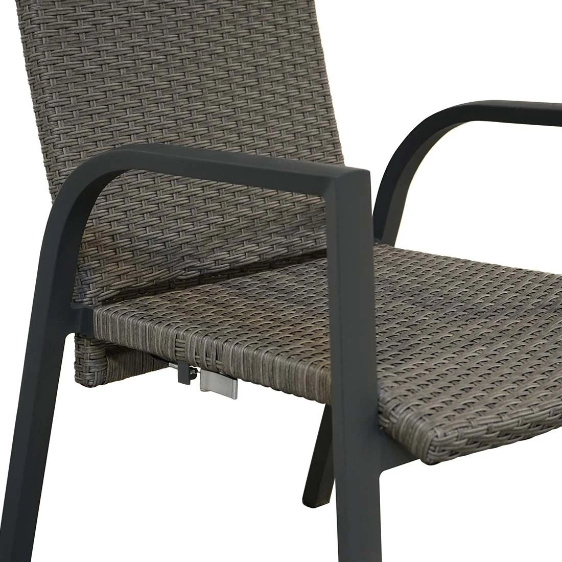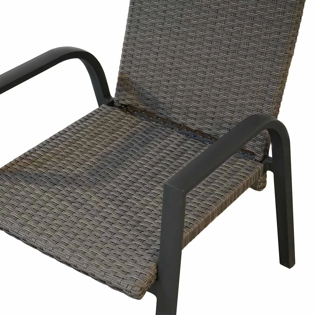 Das Gestell wird aus Aluminium gefertigt. Das geringe Eigengewicht des Materials macht den Stapelsessel zu einem robusten, aber dennoch leicht zu transportierenden Sitzmöbel auf Ihrer Terrasse. Die Sitzfläche des Stapelsessels besteht aus modernem Polyrattan. Ein Material, das sich durch seine lange Haltbarkeit auszeichnet. Für ein perfekt stimmiges Gesamtbild sorgt die einheitliche Farbgebung in stilvollem Grau.