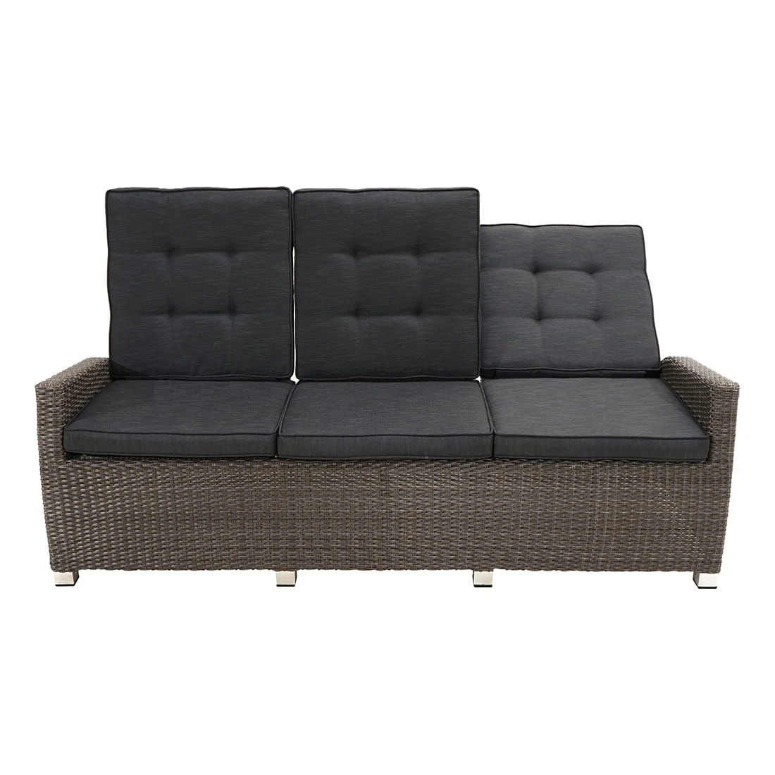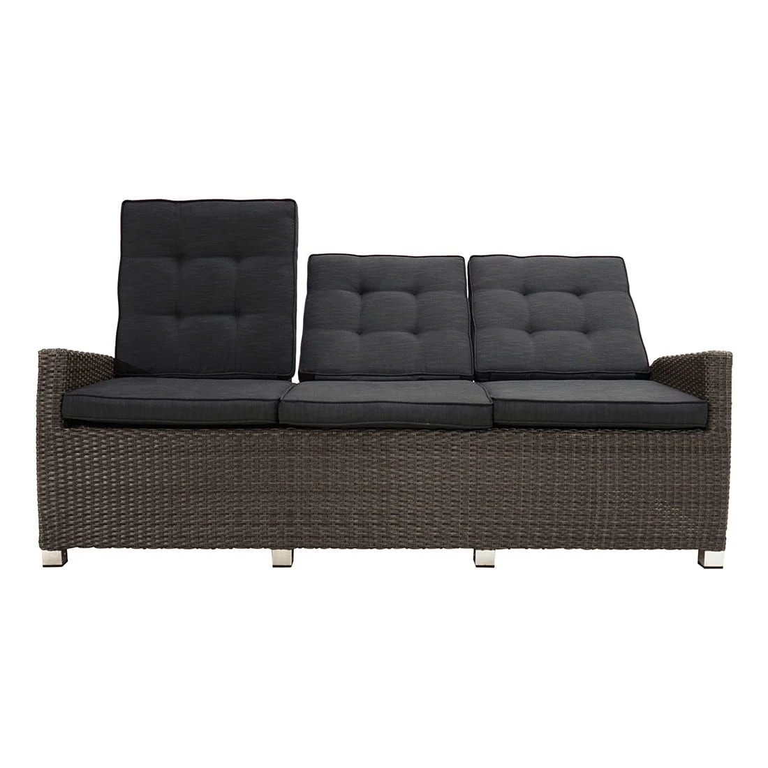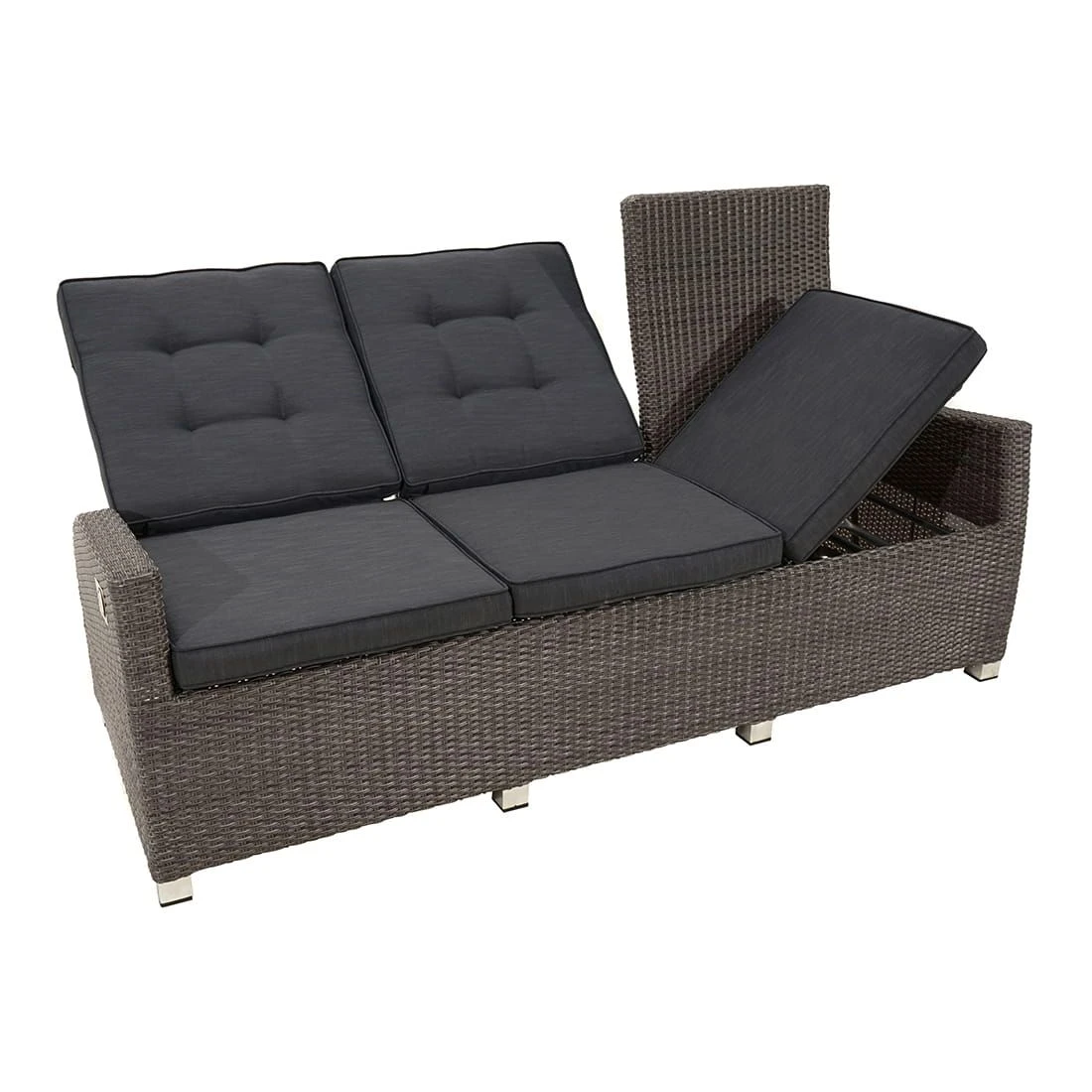 Das Gartensofa ist verstellbar und kann daher nach Belieben eingestellt werden. Die Rückenlehne lässt sich stufenlos in Ihre Wunschposition bringen.