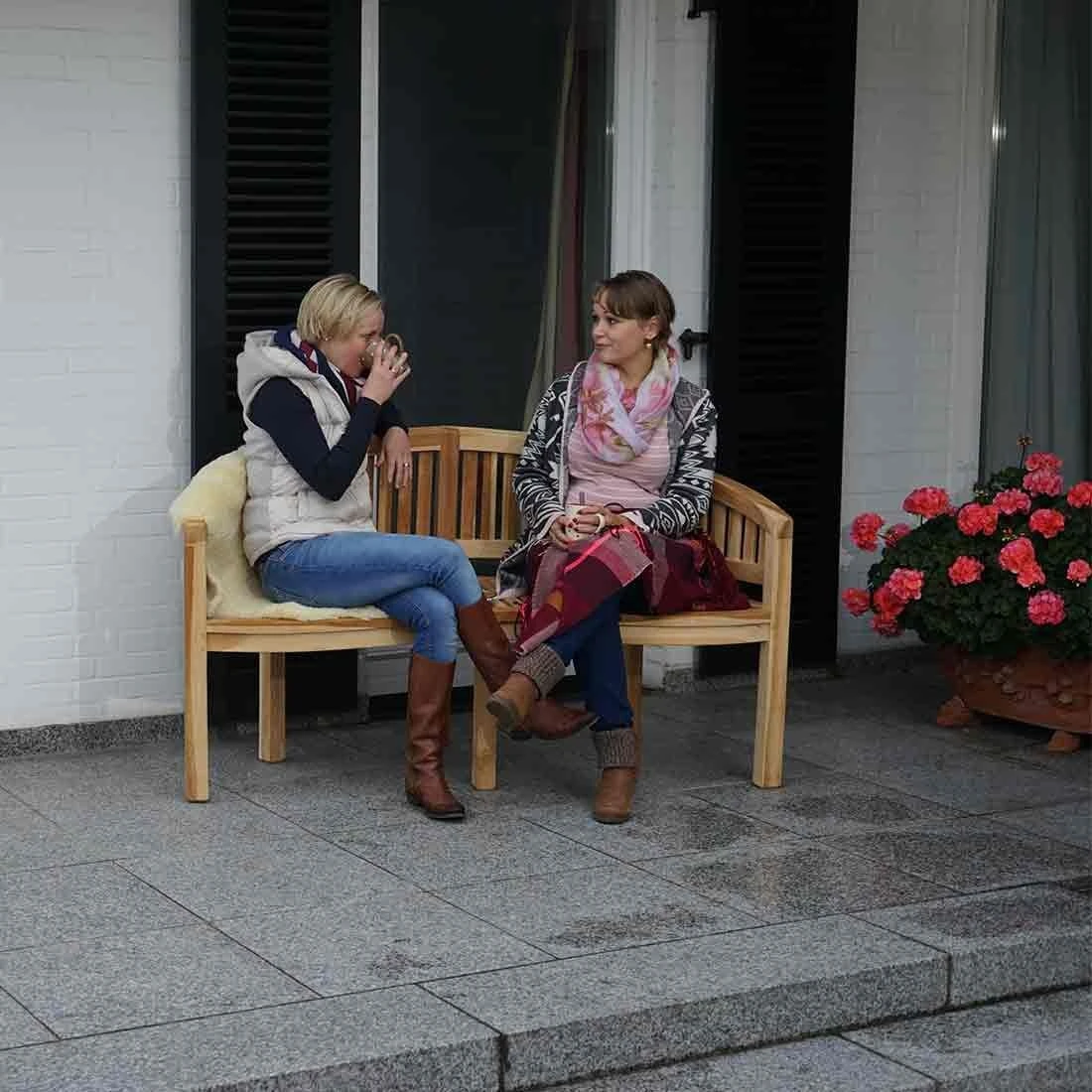 Die Gartenbank begeistert damit, dass das Gestell und die Sitzfläche aus Teakholz gefertigt sind. Dies erzeugt nicht nur ein elegantes, sondern auch einheitliches Bild des attraktiven Möbels. Für ein perfekt stimmiges Gesamtbild sorgt die einheitliche Farbgebung in stilvollem Eco Teak.