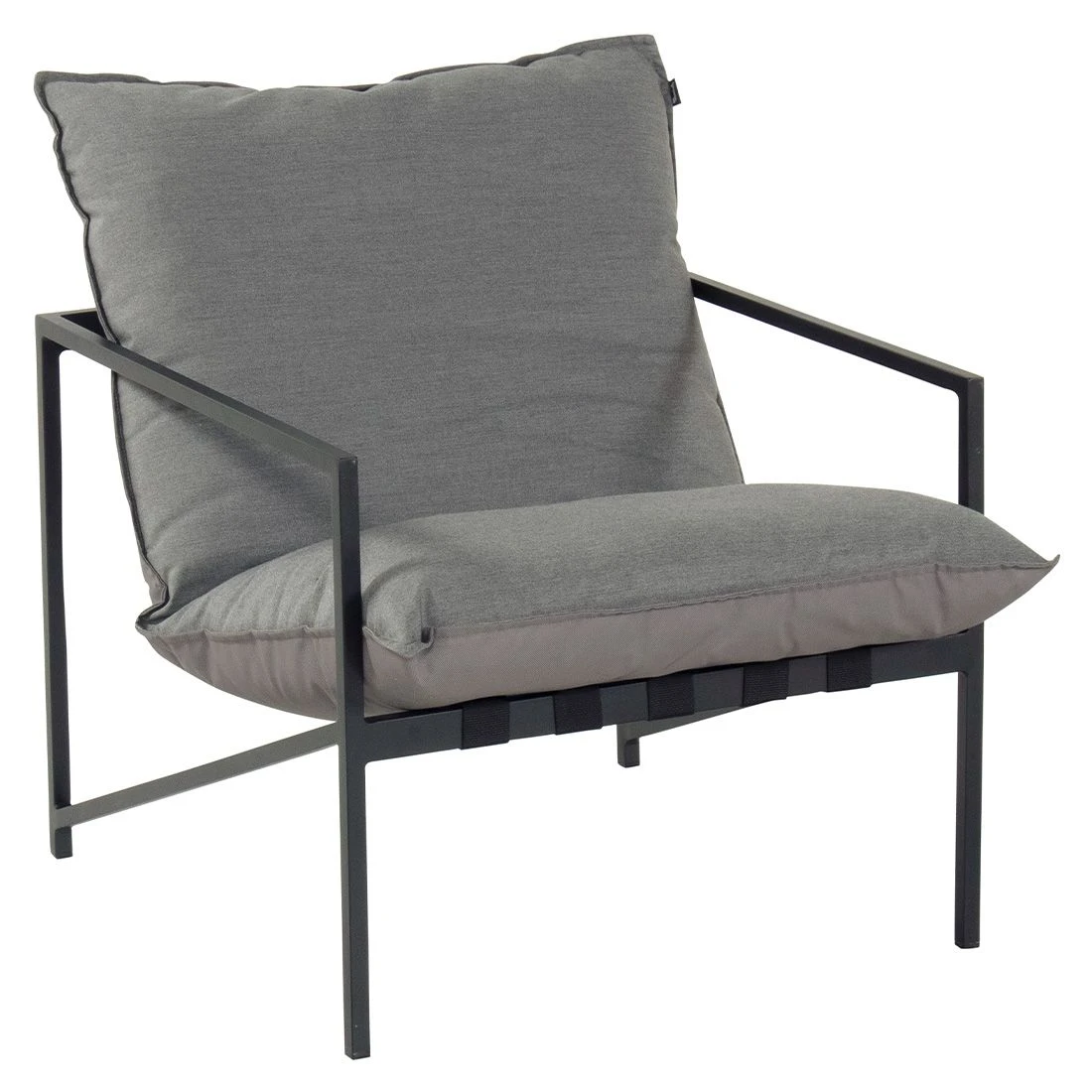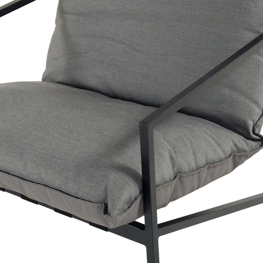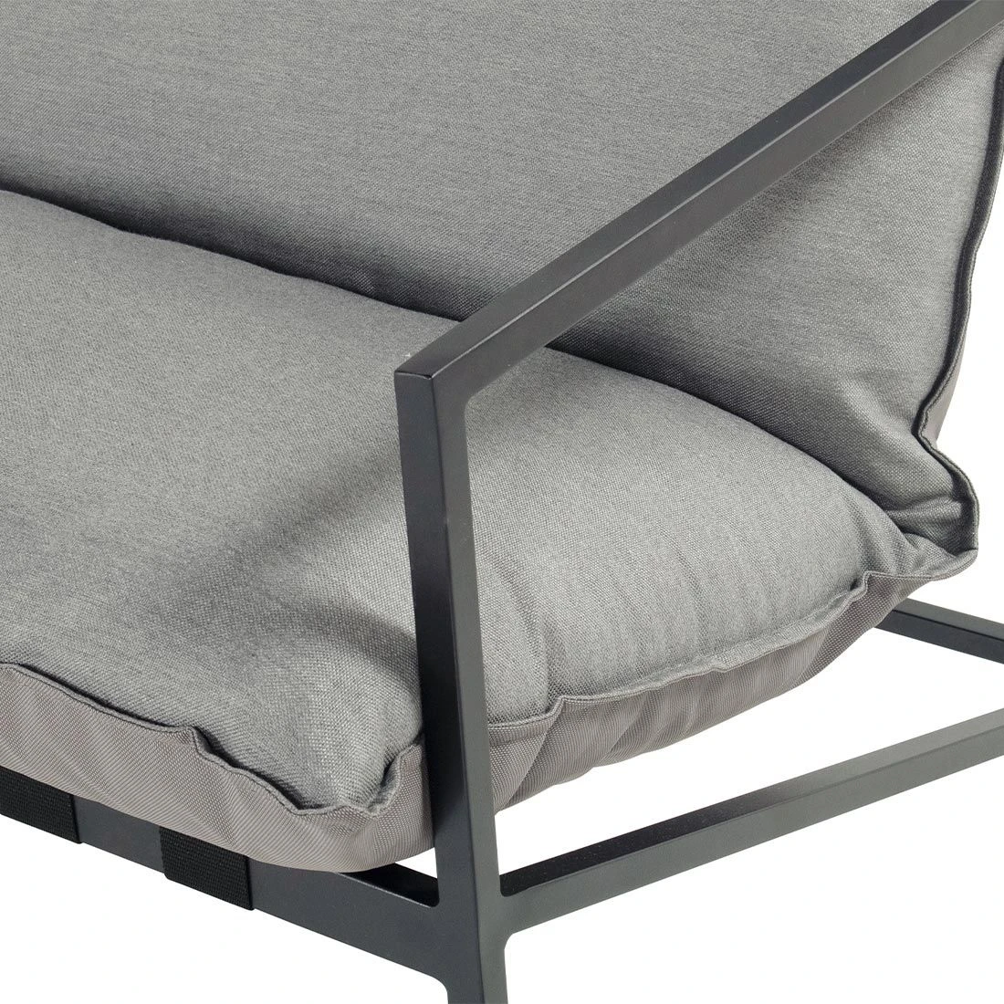 Das Gestell wird aus Aluminium in der Farbe Schwarz gefertigt. Als Bezug wird ein hochwertiger Stoff verwendet. In diesem Fall kommt der wasserabweisende und UV-beständige Markenstoff Sunbrella zum Einsatz. Er ist zudem auch schmutzabweisend und schimmelresistent – ideale Voraussetzungen für eine gepolsterte Lounge im Freien.