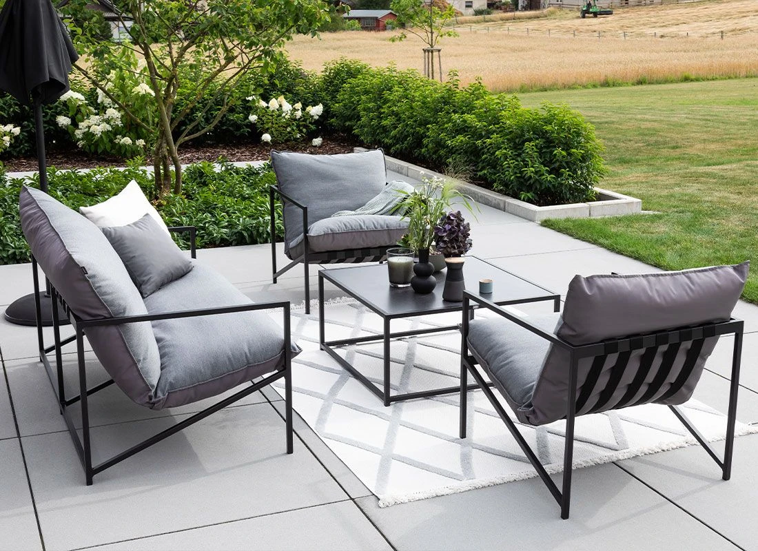 Für die Tischplatte wird hochwertiges Keramik verarbeitet, welches auf der Terrasse und im Garteneine angenehme Wohlfühl-Atmosphäre erzeugt.